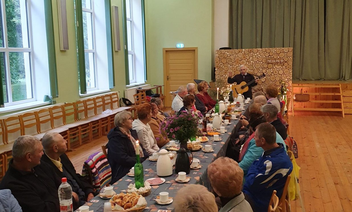 5. oktobrī, Medumu Tautas namā notika pasākums senioriem “Rudens skan!”. Lietainais laiks netraucēja iesākt jauko pasākumu ar Pirmā Pasaules kara muzeja apmeklējumu. Turpinājums notika atjaunotajā zaļgani vasarīgā zāle, kur valdīja draudzīga un skanīga atmosfēra. Pasākums iesākās ar sirsnīgiem novēlējumiem, ar kuriem savā uzrunā pagasta pārvaldes vadītājs Nikolajs Poltavecs uzrunāja un apsveica visus klātesošos Seniora dienā. Ar pašsacerētiem dzejoļiem un dziesmām iepriecināja Anatolijs Gallers, viesis no Daugavpils. Kā arī vietējā dziedātāja Lūcija Smane ar akordeona skaņām un dziesmām sniedza burvīgu noskaņu, kurā visi kopā padziedāja vecas, sirdij mīļas dziesmas.Pārtraukumā visi padegustēja konkursam atnestos ievārījumus, kā arī katrs nobalsoja par visgaršīgāko. Ekskluzīvas balvas mums sagatavoja Medumu rokdarbu pulciņš “Kaleidoskops”- adītus adatu turētājus, čības un karstu virtuves priekšmetu turētājus. Pirmo vietu ieguva Diāna Mikulane ar savu noslēpumaino ievārījumu, kura sastāvdaļas neviens nevarēja uzminēt (no burkāniem), otro vietu – Nataļja Ivanova ar cidoniju ievārījumu un Valentīna Voronova ar ābolu ievārījumu. Katra "garšīgā" burciņa bija īpaša, paldies visiem konkursa dalībniekiem par piedalīšanos! Katram šajā vakarā bija iespēja iemūžināt sevi rudenīgi omulīgā foto stūrītī. Medumu pagasta pārvaldes vārdā senioriem novēlām stipru veselību, saulainas, priecīgas dienas un pozitīvu noskaņojumu!