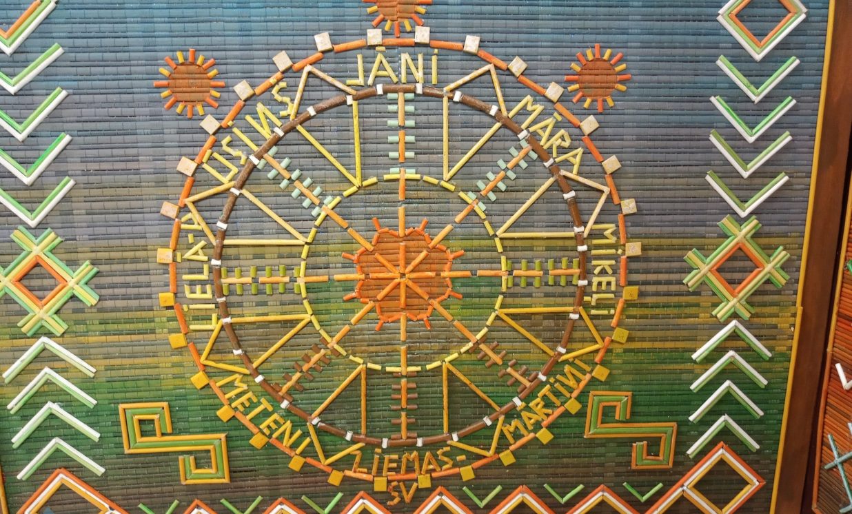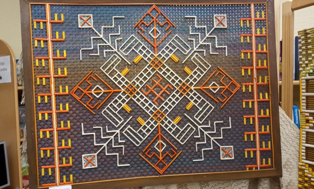 Sienas dekoru izstāde “Latvju rakstu zīmes un krāsu ritmi” Maļinovā