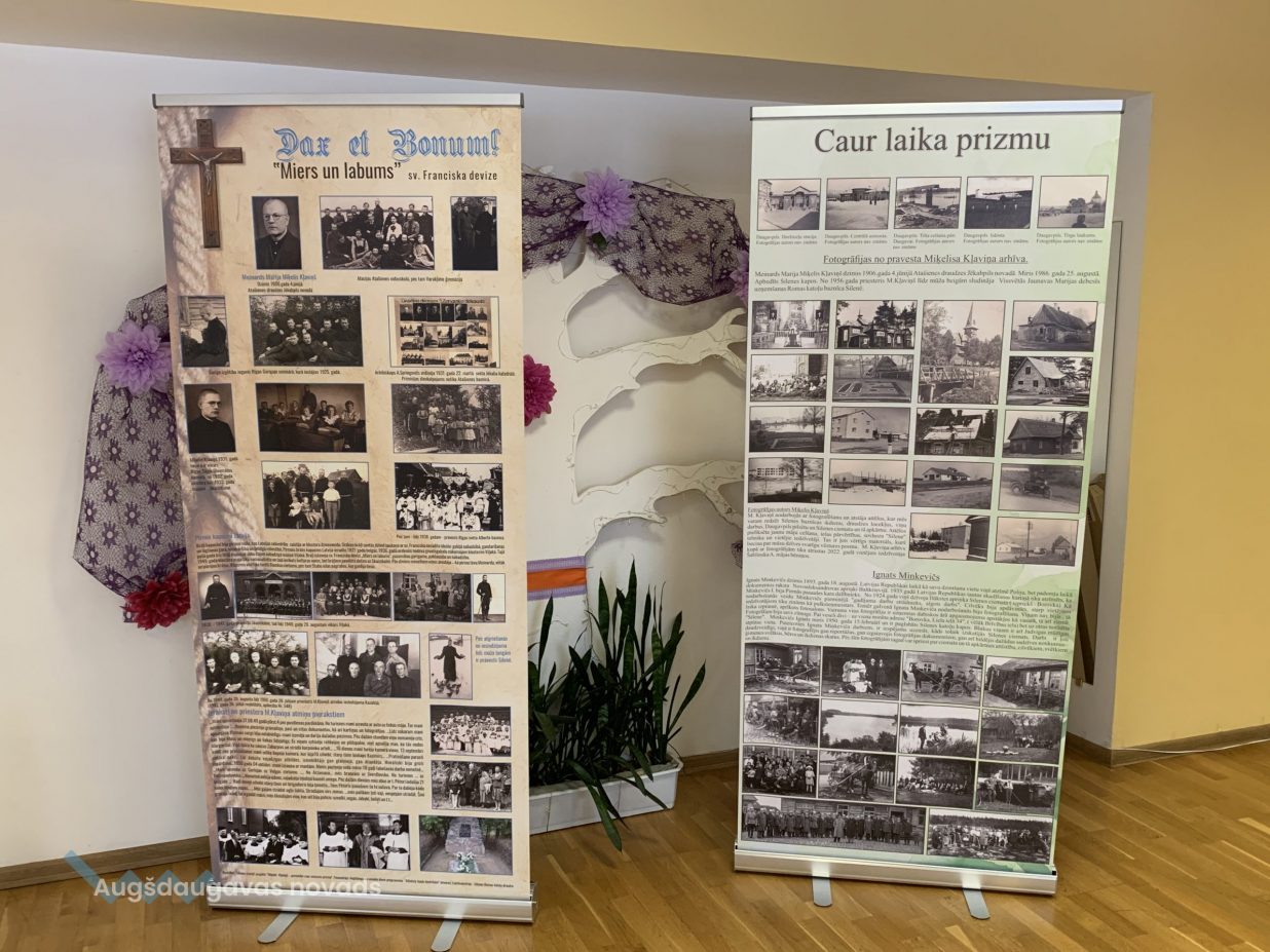 Ļoti vērtīgi eksponāti, saistīti ar priestera Miķeļa Kļaviņa personu, kurš sludināja mūsu baznīcā no 1956. gada līdz 1986. gadam. Baznīcas bēniņos tika atrastas viņa sarakstītās atmiņas. Tajās aprakstīts, kā prāvestu arestēja un izsūtīja uz Sibīriju. Vietējais iedzīvotājs A. Šablinskis savas mājas remonta laikā bēniņos atrada M. Kļaviņa foto arhīvu. Tajā glabājās vairāk nekā tūkstotis fotogrāfiju, un mēs varam redzēt priestera personīgās fotogrāfijas, kur viņš bija iemūžināts no jaunības gadiem līdz viņa nāves brīdim. Ir atrastas pat ļoti vērtīgas fotogrāfijas Sibīrijas trimdas laikā. Interesanti arī tas, ka M. Kļaviņš pats nodarbojās ar fotografēšanu un atstāja fotogrāfijas, kurās mēs varam redzēt ne tikai Silenes baznīcas ikdienu, draudzes locekļus, viņu darbus, bet arī Silenes ciematu un tā apkārtni. Attēlos piefiksēta jaunu māju celšana, ielas pārvērtības, sovhoza “Silene” tehnika un vietējie iedzīvotāji. Kopumā varam teikt, ka tas ir ļoti vērtīgs materiāls, kurš liecina par mūsu ciemata svarīgu vēstures posmu. Lai to saglabātu un rādītu plašākai sabiedrībai, par projekta finansēm tika iegādāti fotoalbumi, fotogrāfijas klasificētas un pielāgotas izvietošanai ekspozīcijā. Lai iepazīstinātu ar informāciju pēc iespējas plašāku auditoriju, tika iegādāti divi viegli uzstādāmi, uzglabājami un transportējami Roll Up baneri. Pirmajā banerītika ievietota informācija par Miķeļa Kļaviņa dzīves gaitu, otrajā par Silenes ciemata vēsturi.