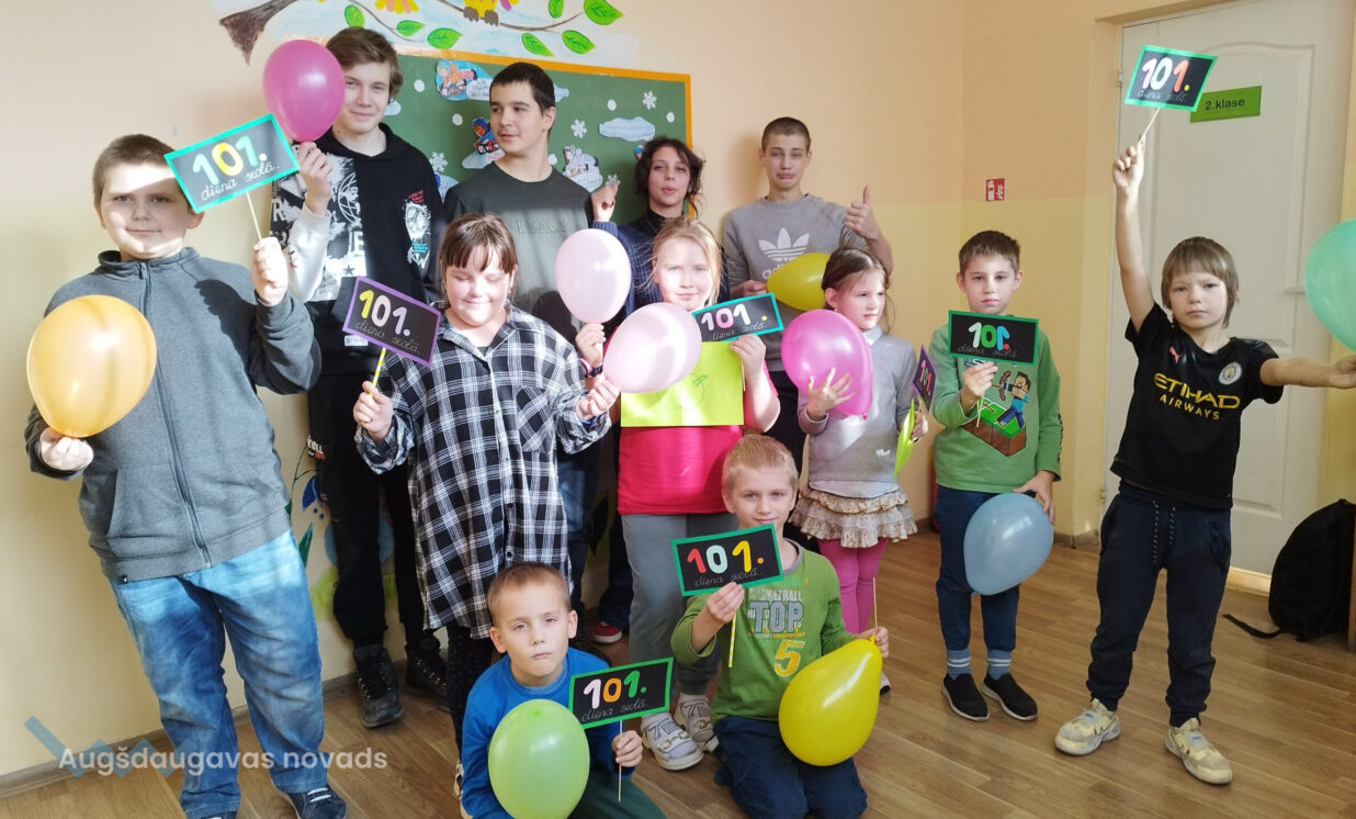 14. februārī Randenes pamatskolā bija īpašs notikums – 1. klases 101. diena skolā! Šī diena bija pilna prieka, jautrības un jauniem atklājumiem. To organizēja skolas līdzpārvalde. Pasākuma mērķis bija paskatīties, ko šajā laikā mazie ir paveikuši, iemācījušies un, protams, radīt pozitīvas emocijas.