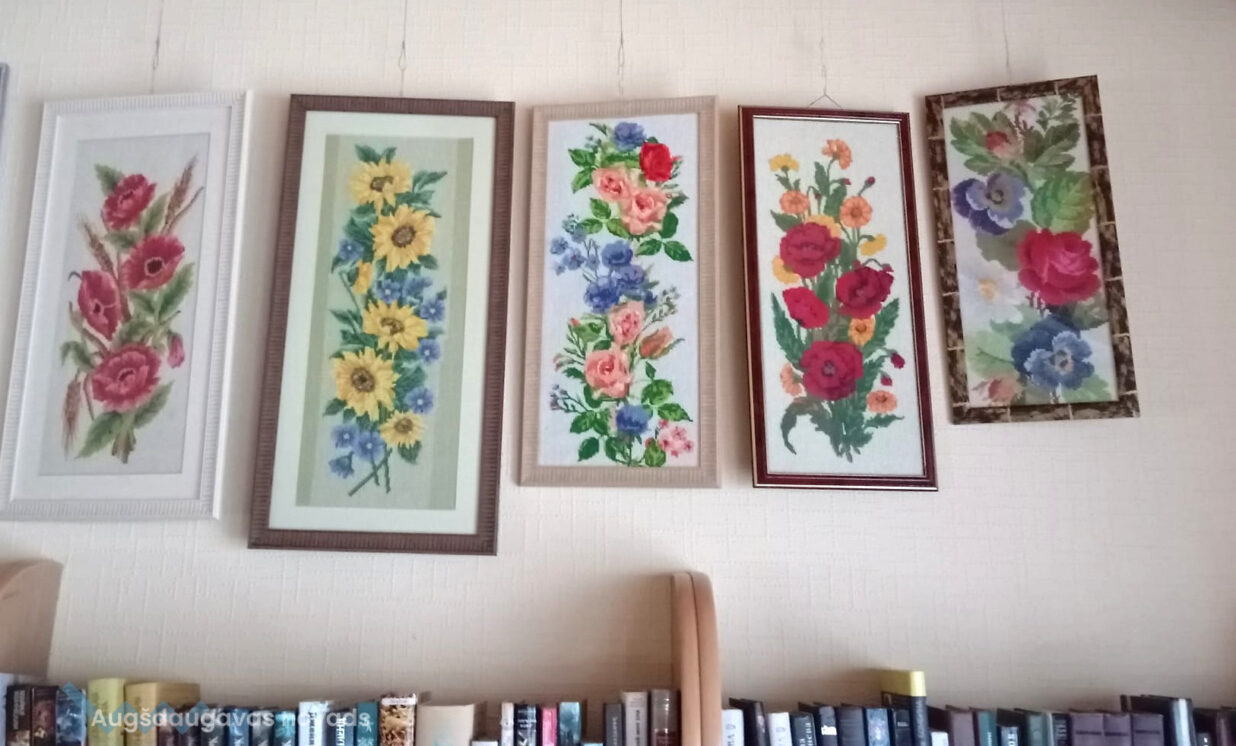 “Sirds balss” izšūto gleznu izstādes atklāšana Maļinovas pagasta bibliotēkā