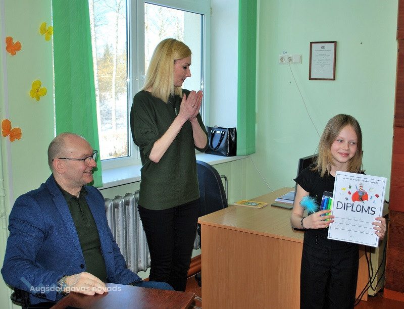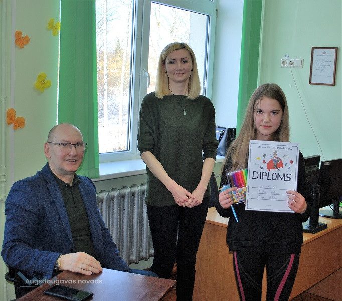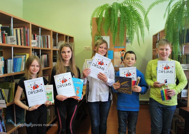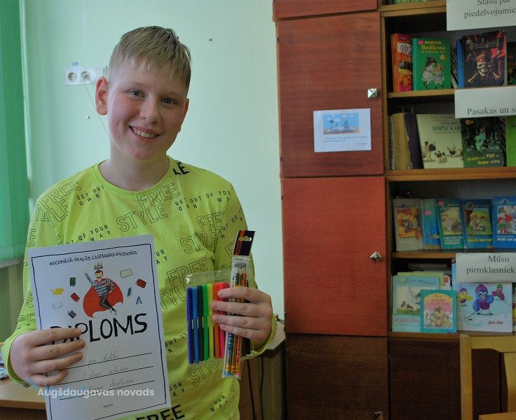 Mūsu skolu konkursā Naujenes tautas bibliotēkā pārstāvēs Daniela Ērika LAPIŅA, kuras lasījumu žūrija un klausītāji novērtēja visaugstāk. Meitene lasīšanai bija izvēlējusies fragmentu no Ē. Kestnera grāmatas “Divas Lotiņas”. 2.vietu ieguva Jūlija Goluba, bet 3. vietu – Alise Kislaja.