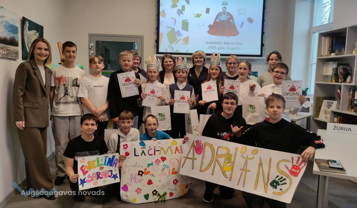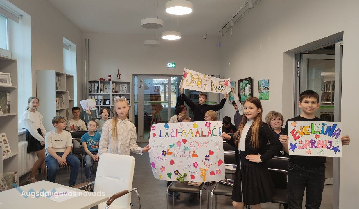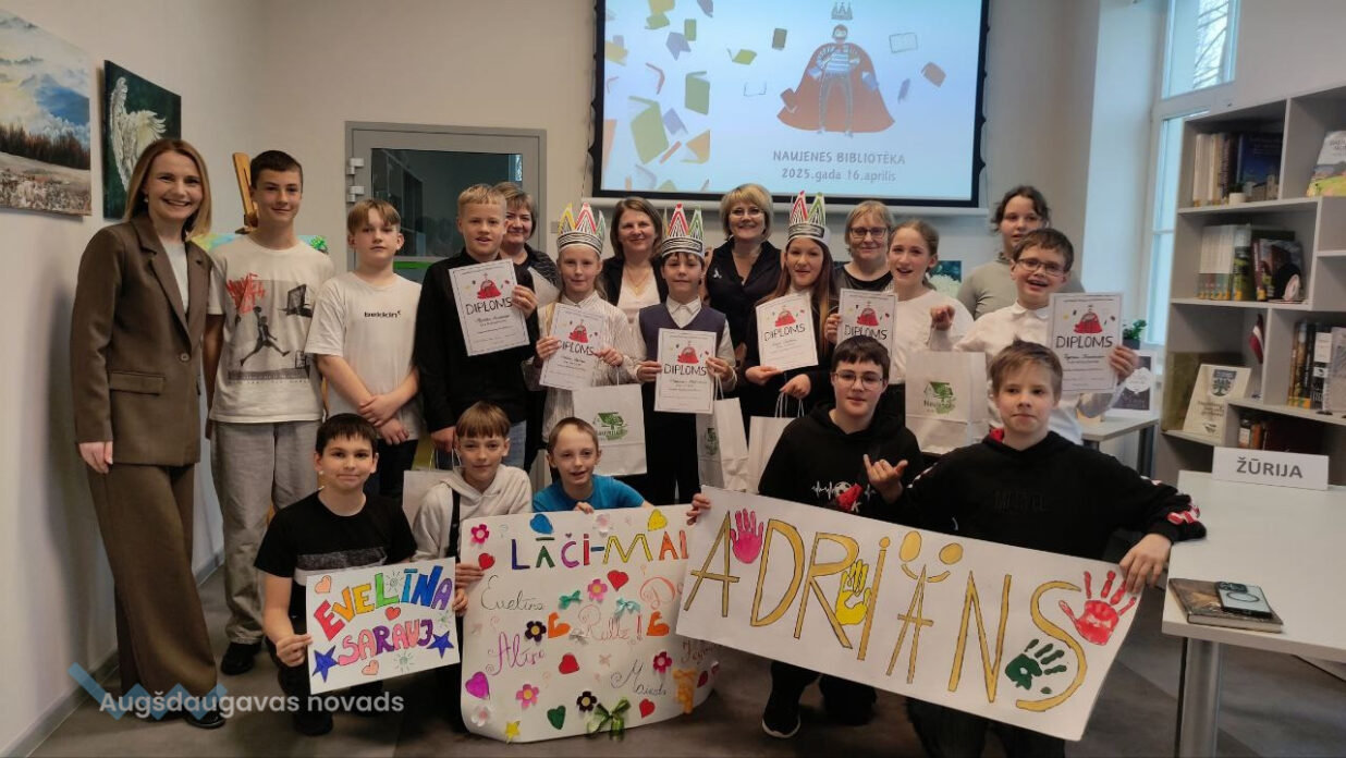 Un atkal Naujenes bibliotēkā svētku atmosfēra! 16.aprīlī 5.klašu skolēni no Naujenes un Lāču pamatskolām sacentās Skaļās lasīšanas sacensību I kārtas pusfinālā.