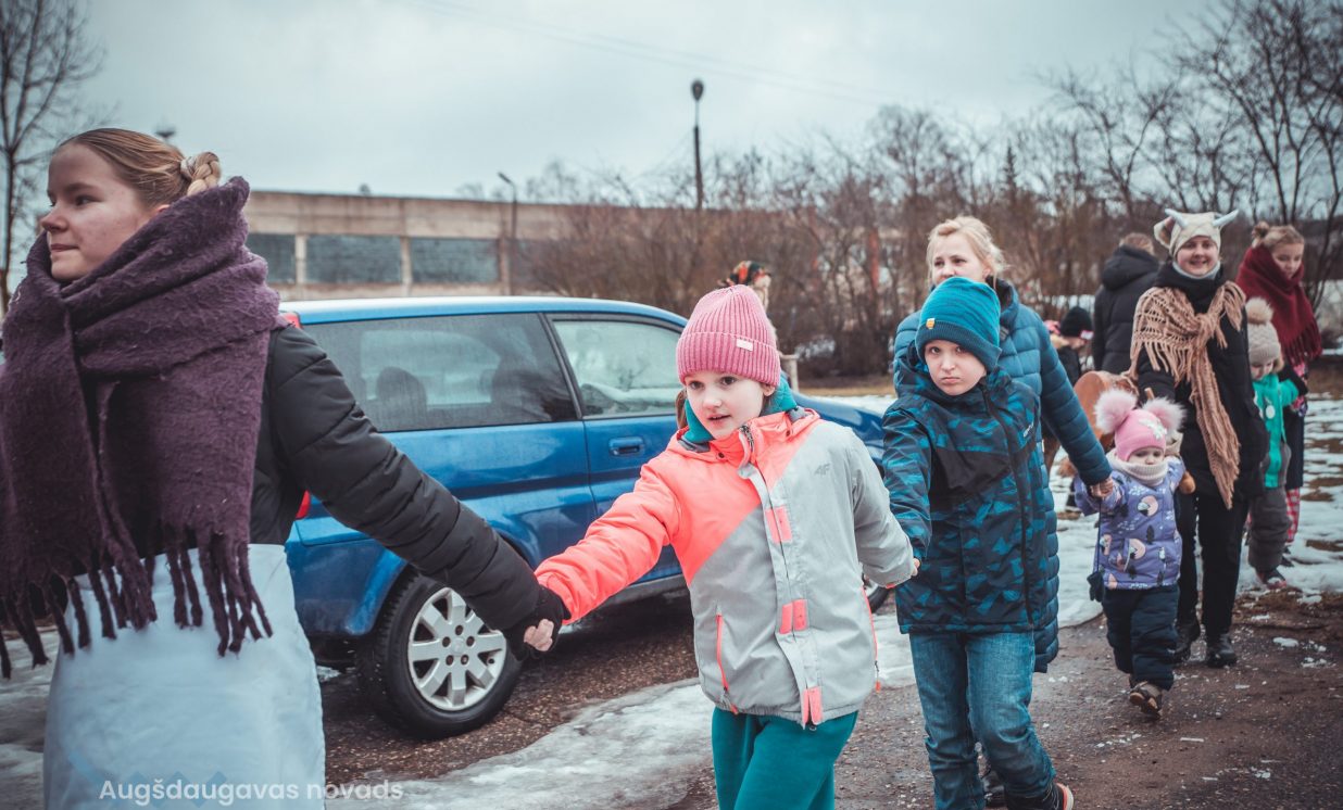 Skanīgais Meteņu ekspresis “laidās” pa Naujenes pagastu