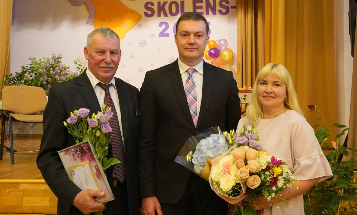 Pasākumā Sventes vidusskolā prieks mijās ar skumjām, jo šis mācību gads bija pēdējais trim pedagogiem, kuri nolēmuši doties pelnītā atpūtā.