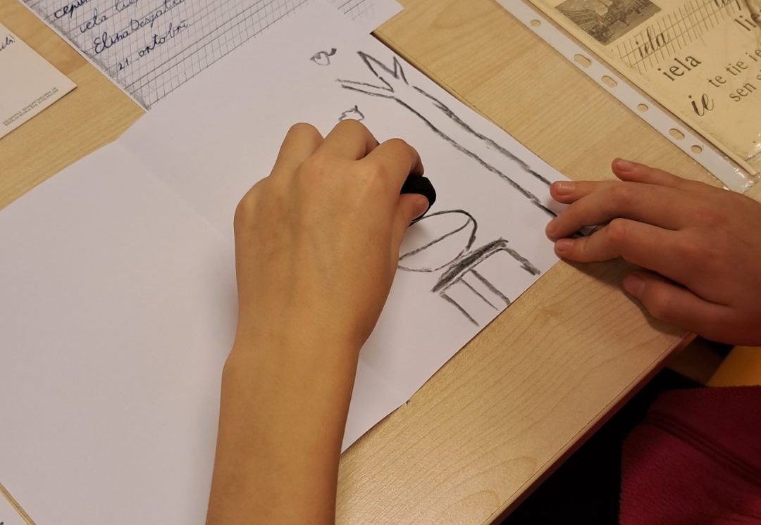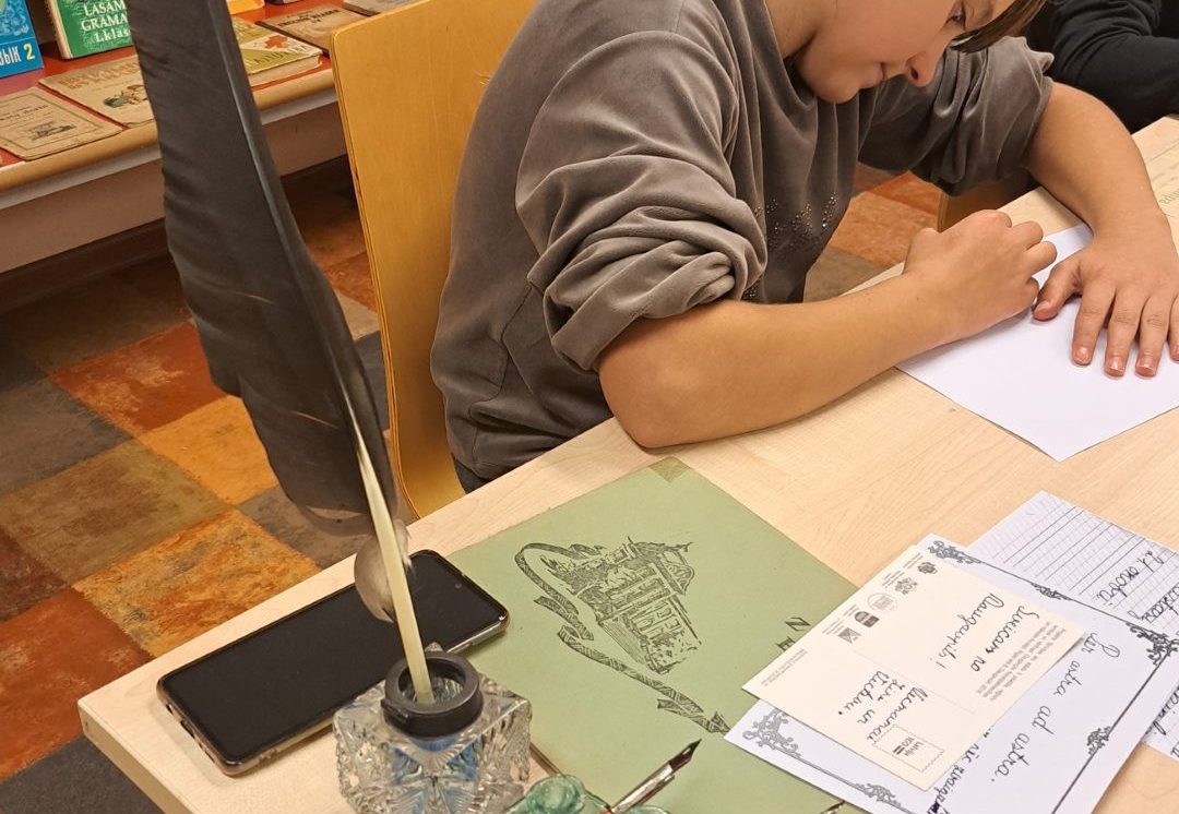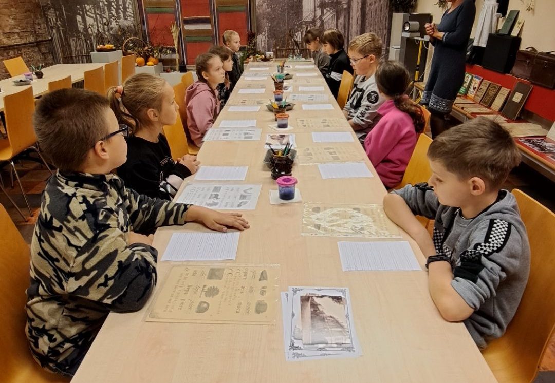 Izmantojot muzeja krājuma mācību grāmatas, skolēni rotaļu veidā pildīja dažādus vēstures periodiem raksturīgos uzdevumus: lasīšana vecajā drukā, glītrakstīšana, aritmētika, zīmēšana. Uzdevumu veikšanai bērni lietoja vēstures periodam atbilstošus rakstāmpiederumus: tinti, spalvaskātus, ogles. Bērni atzina, ka rakstīt ar spalvaskātu nav tik viegli, grūti panākt, lai burti būtu vienāda lieluma. Skolēni guva pozitīvas emocijas un atraisīja savu radošumu!