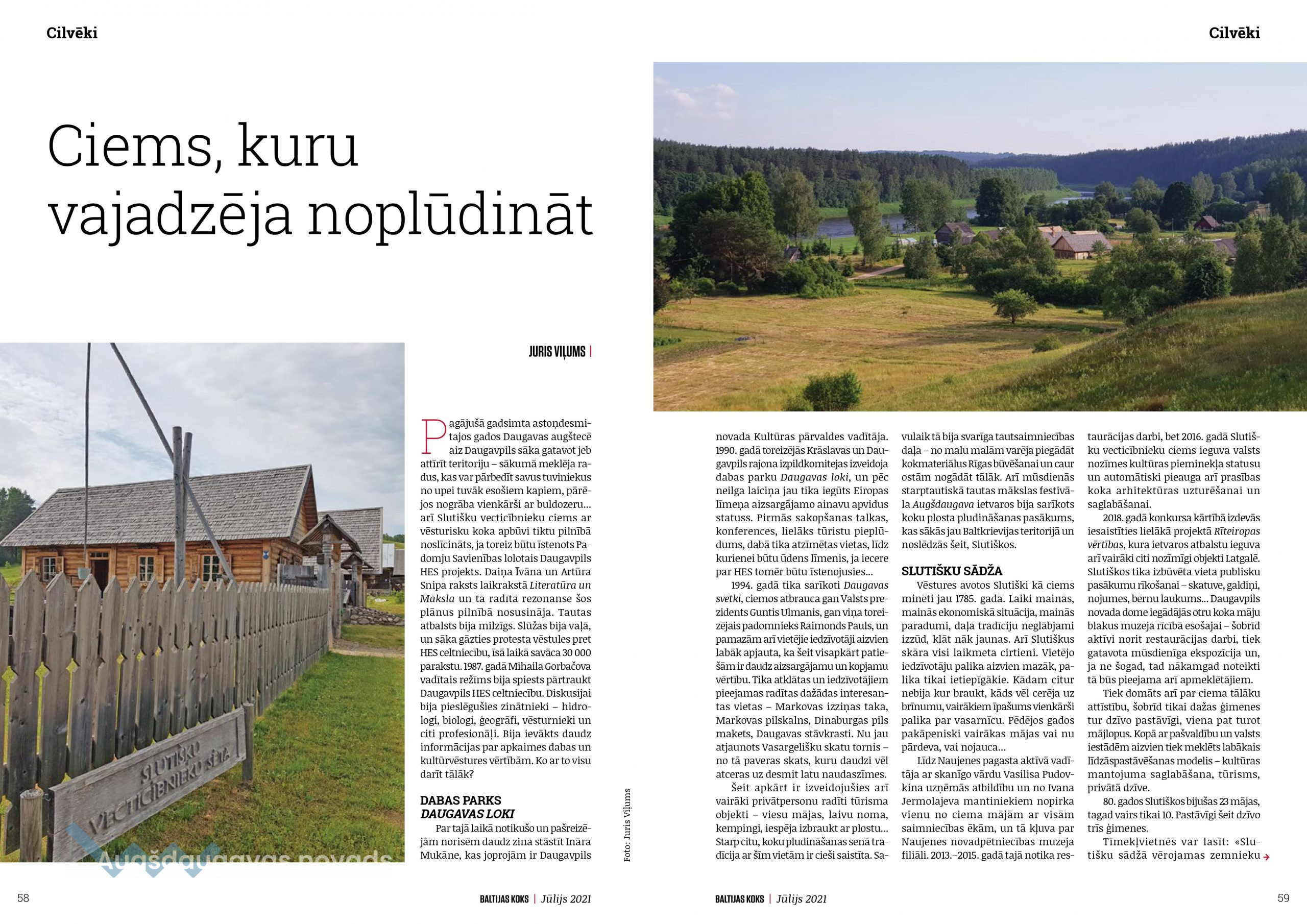 "Ciems, kuru vajadzēja nopludināt" - žurnālā "Baltijas koks" var lasīt rakstu par Slutišķu ciemu Naujenes pagastā, kurš pagājušā gadsimta astoņdesmitajos gados varēja nonākt zem Daugavas ūdeņiem, ja vien tiktu īstenota iecere par Daugavpils HES būvniecību. Šodien Slutišķu ciems ir gleznaina vieta Daugavas lokos, kur tiek īstenoti projekti, notiek kultūras pasākumi un tiek gaidīti ciemos viesi.