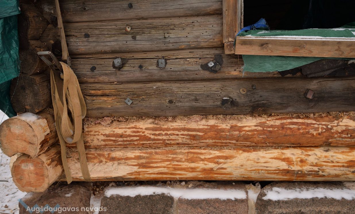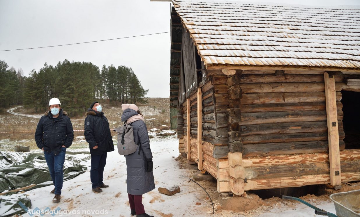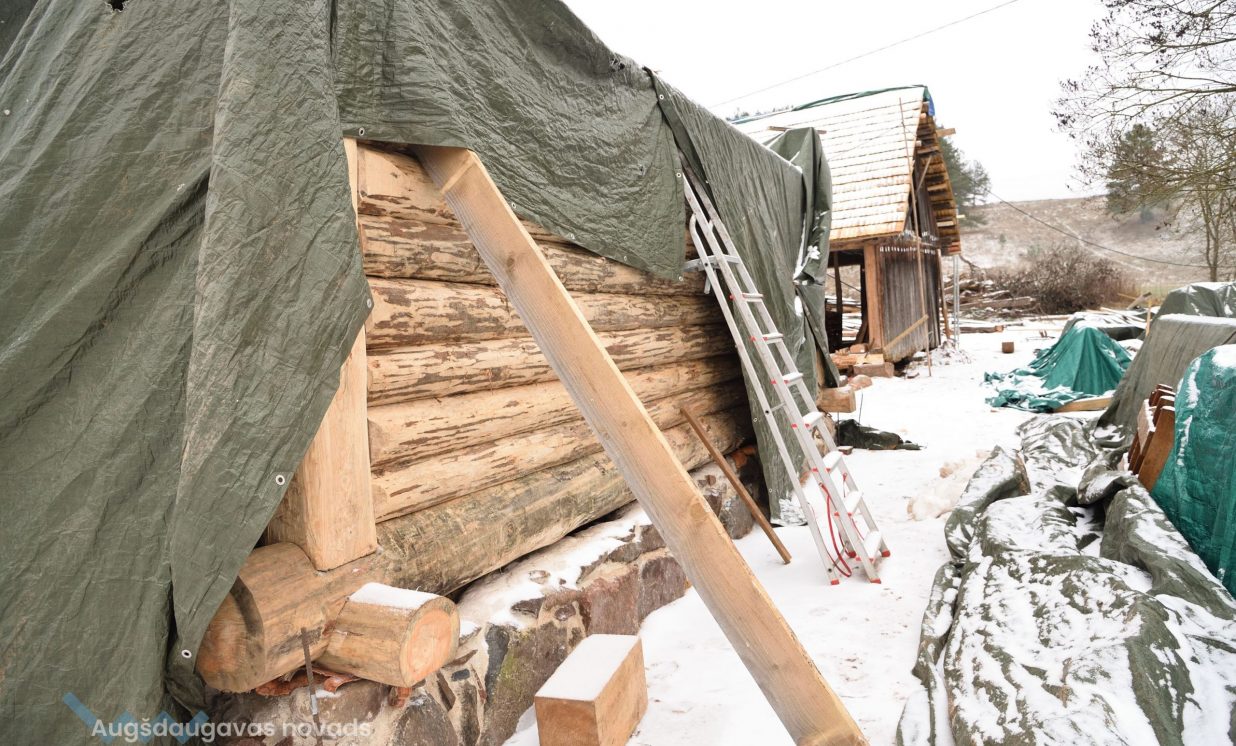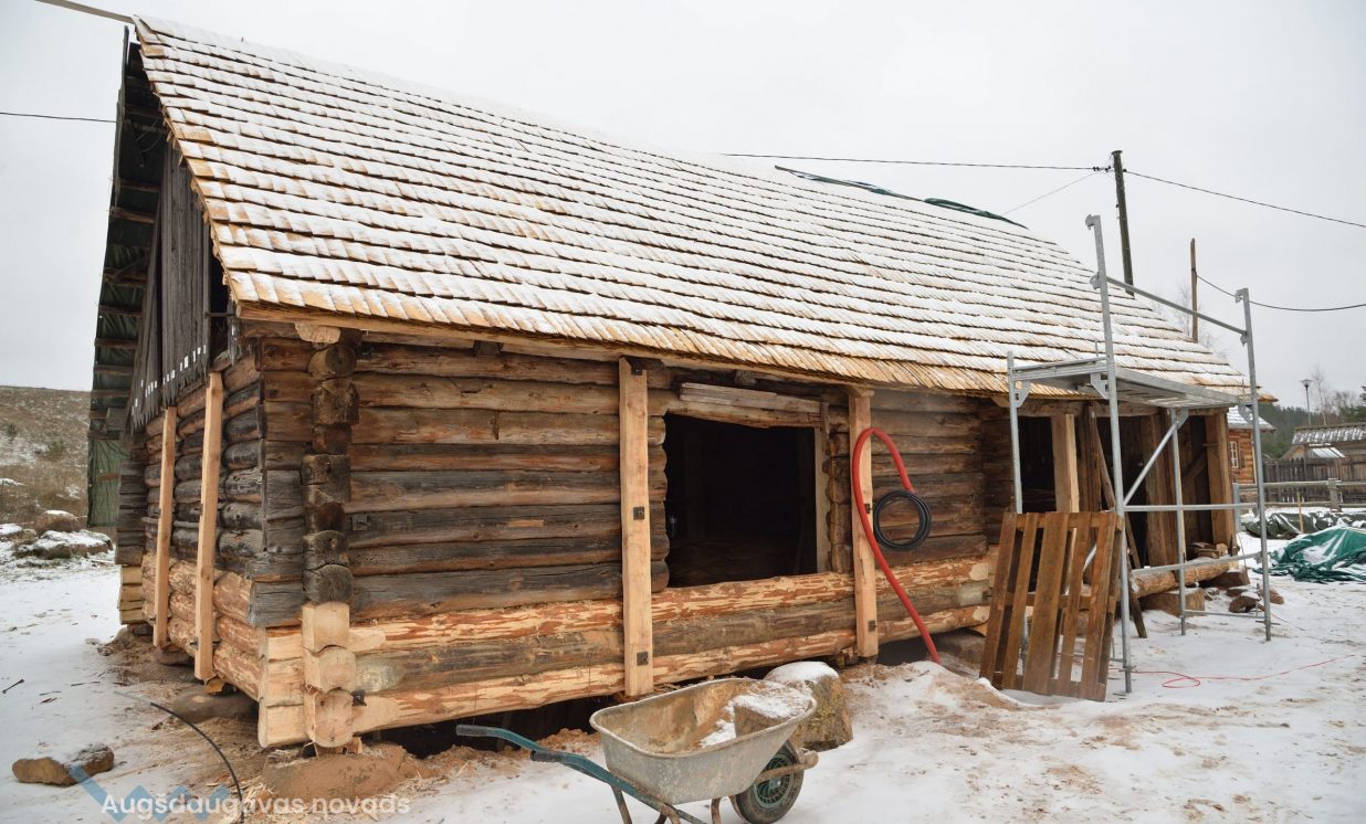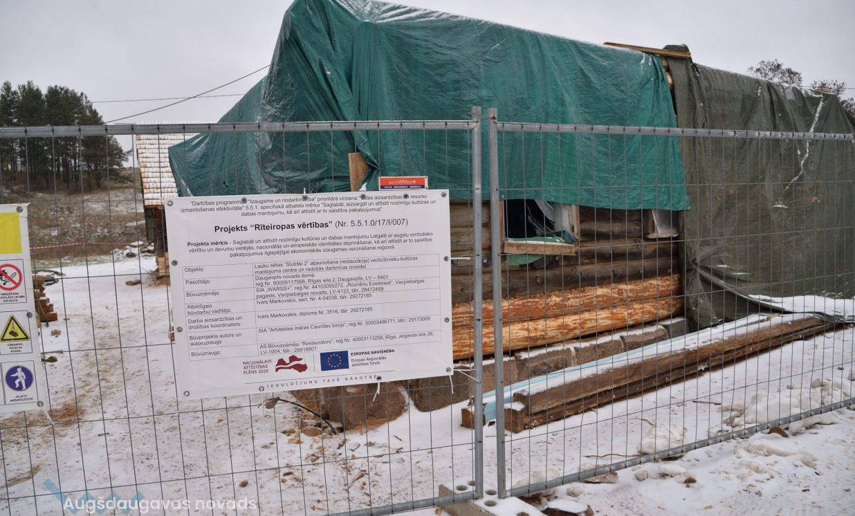 Slutišķu sādžā tiek restaurētas divas senās guļbūves