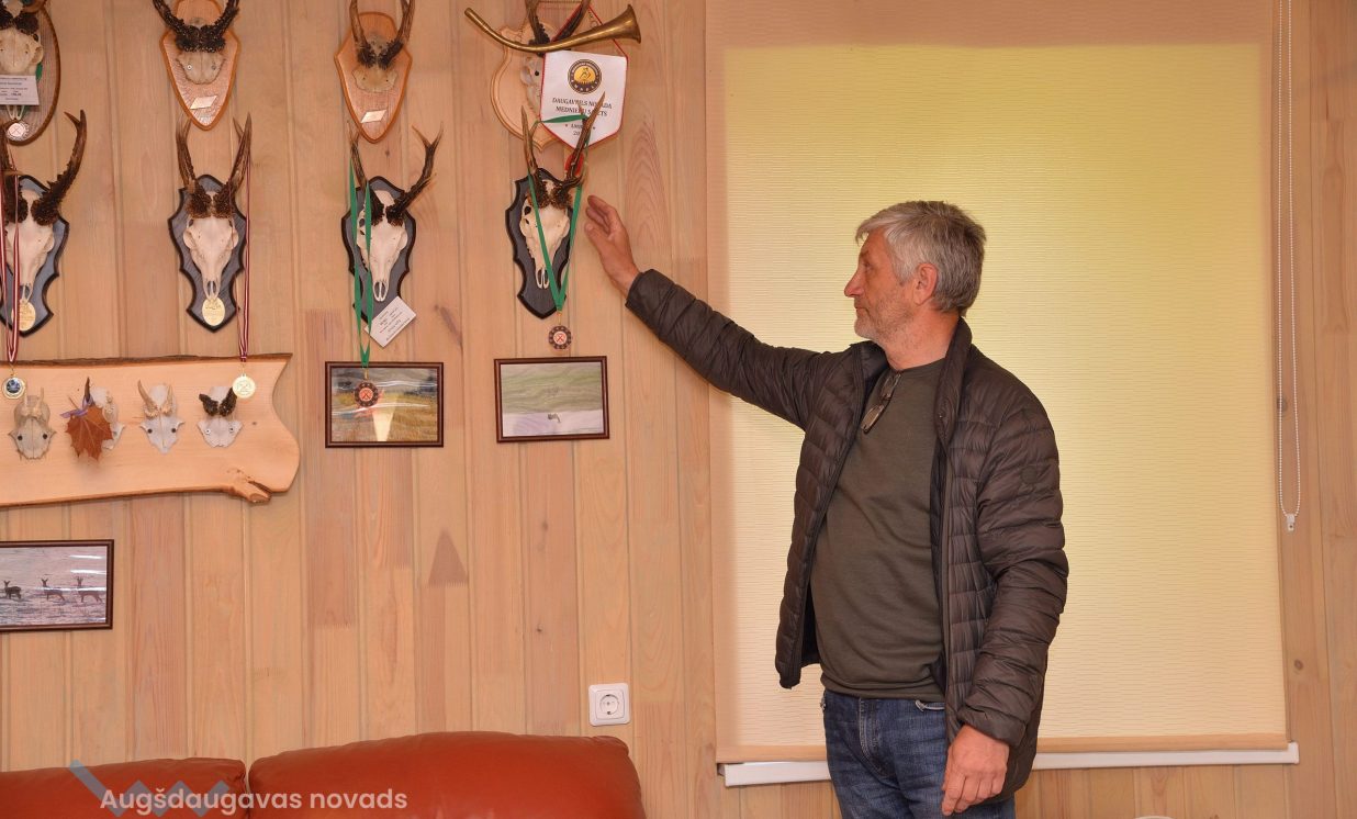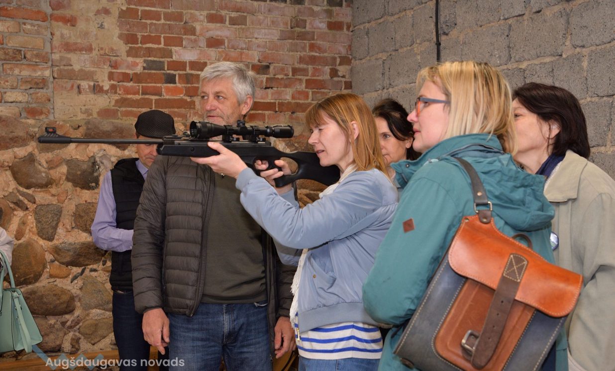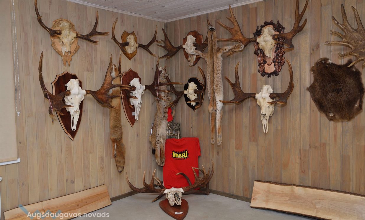 Pirmais viesus uzņēma mednieku kluba “Ambeļi” vadītājs Egils Rūtiņš, kurš pastāstīja par Mednieku namiņa izveidi Ambeļu muižas saimniecības ēkā. Vēl pagājušā gadsimta 90. gados muižas ēka tika izmantota skolas vajadzībām, tajā atradās skolas darbmācības kabineti, bet pēc skolas slēgšanas ēka tika pamesta. Piesaistot ES fondu līdzekļus un ar pašvaldības finansiālu atbalstu, biedrība izveidojusi mednieku un kolektīvu pulcēšanās vietu, kur izveidota trofeju istaba, virtuve un šautuve. Šajās telpās mednieki apgūst šaušanas iemaņas, notiek semināri, trofeju izstādes, tiek uzņemti viesi. Egils uzsvēra, ka daudzas lietas, kā ozolkoka galds un citi galdniecības izstrādājumi ir vietējo amatnieku roku darbs. “Pagastā var atrast cilvēkus, kas nodarbojas ar dažādām interesantām lietām, vajag tikai mācēt viņus piesaistīt,” saka Egils Rūtiņš. Viņš aizrāva klātesošos ar interesantiem mednieku stāstiem.