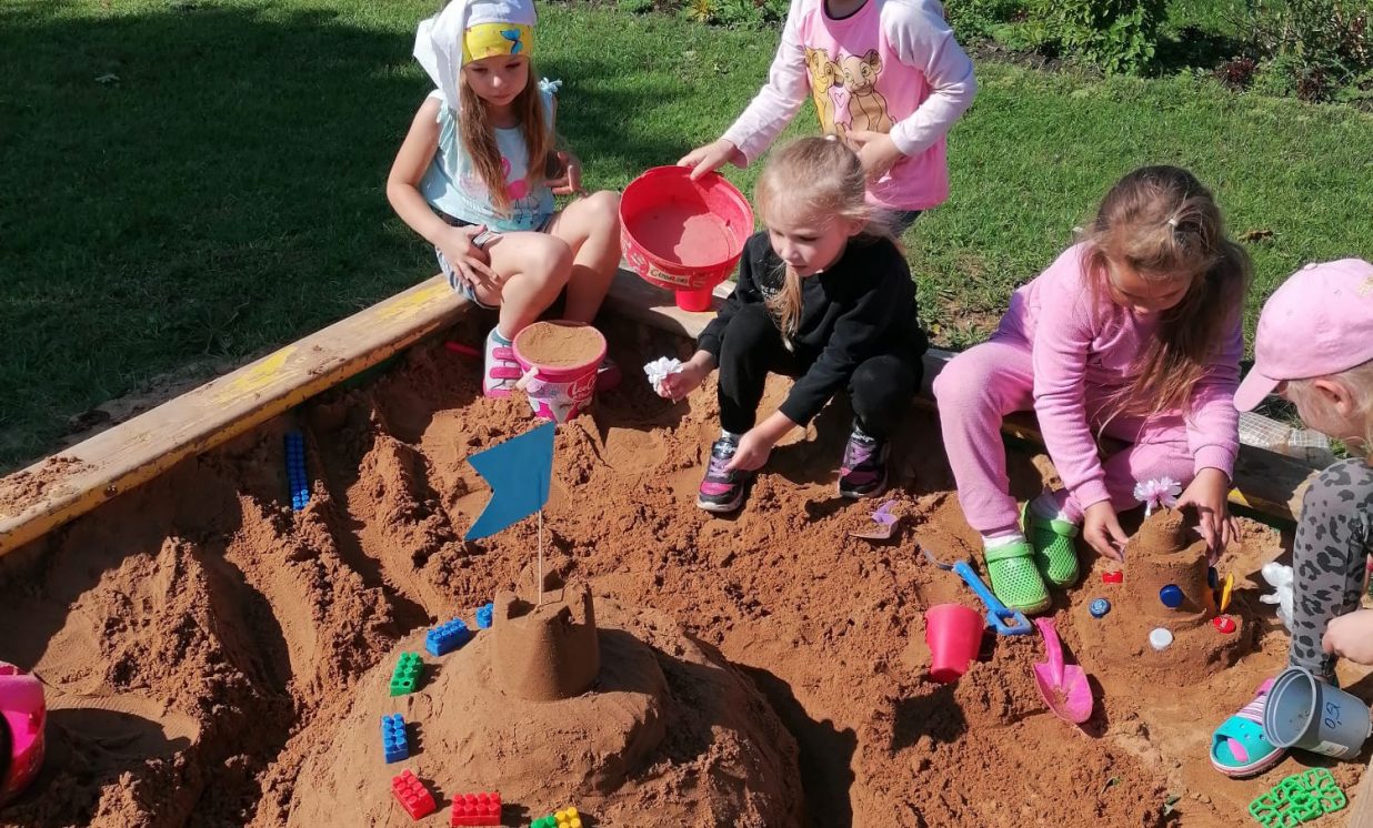 Svētku dienas rītā bērni ar prieku un sajūsmu sagaidīja bērnudārza pedagogu sagatavotu izrādi par Meitenīti, kurai draugi ( Vējš, Lietus un Smilšu Rūķene) palīdzēja radīt brīnumjaukas smilšu kūciņas. Bērni aizrautīgi līdzdarbojās, lai Meitenītei būtu iespēja tikt pie vēlamā rezultāta un piedalīties Smilšu pārvērtību konkursā. Izrādījās, ka tieši Lietum un ūdenim ir maģisks spēks.