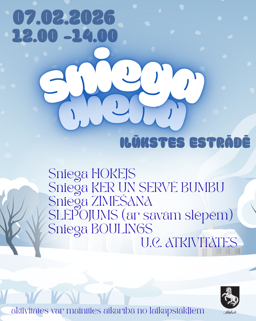 Sniega diena Ilūkstē: Aicinām uz kopīgu ziemas prieku baudīšanu!