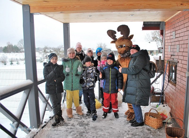 52 dambriežu bara saimnieks Sauļuks, saimniece Beta un viņu kuplā saime mielojās ar mazpulcēnu sagādātajiem gardumiem - dārzeņiem un augļiem. Z/s “Sniegi” saimniece Dina Žilvinska iepazīstināja mazpulcēnus ar informāciju, kas noderēs viņu darbībai un iepriecināja ar jaukām nodarbēm. Kopā ar saimnieci Dinu skolēni izgatavoja Ziemassvētku rūķīšus un brieža dekorāciju. Šajā radošajā procesā iesaistījās visi un bija gandarīti par lieliski paveikto darbu.