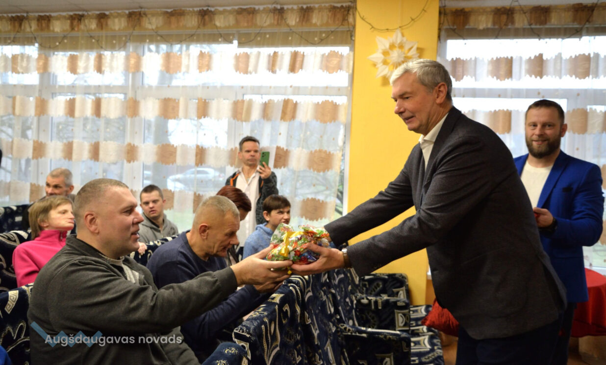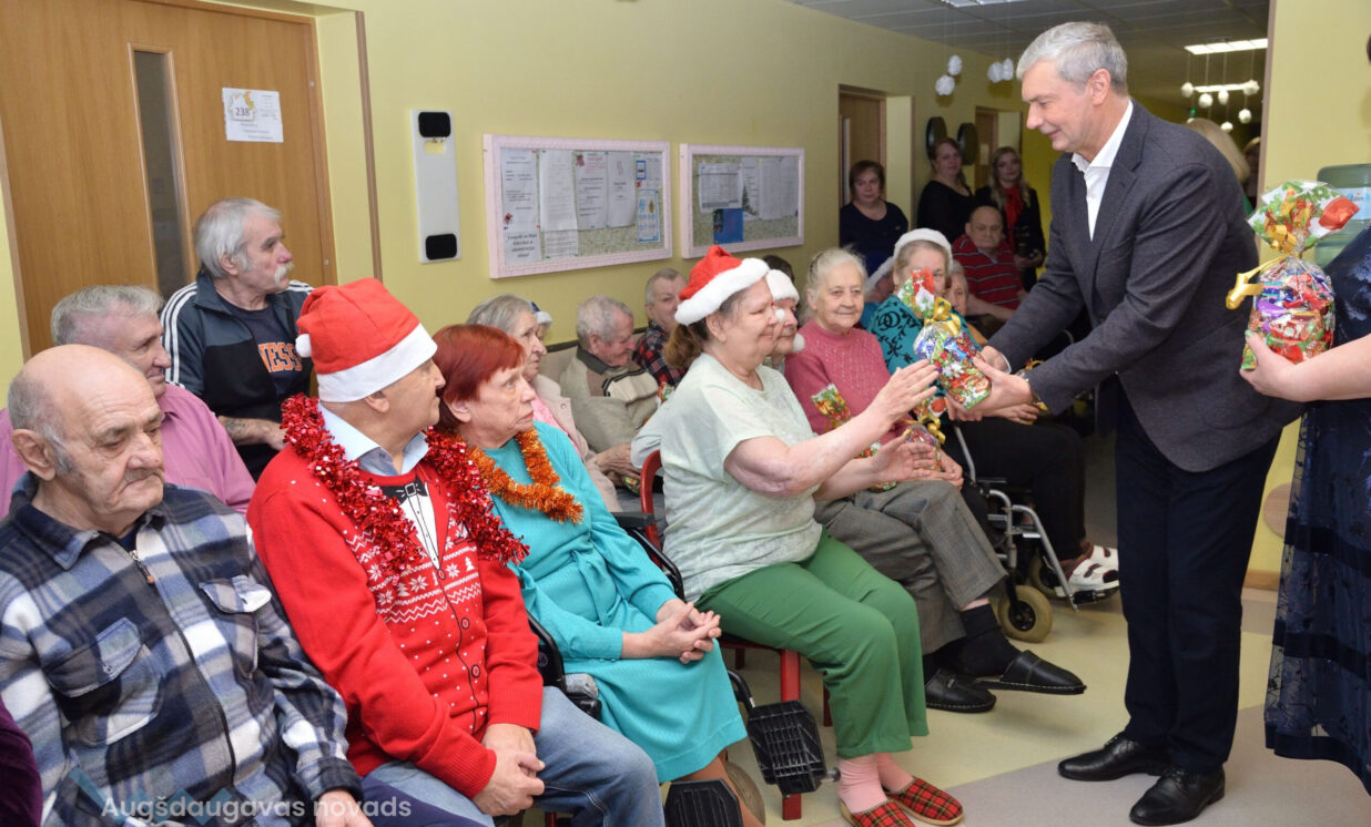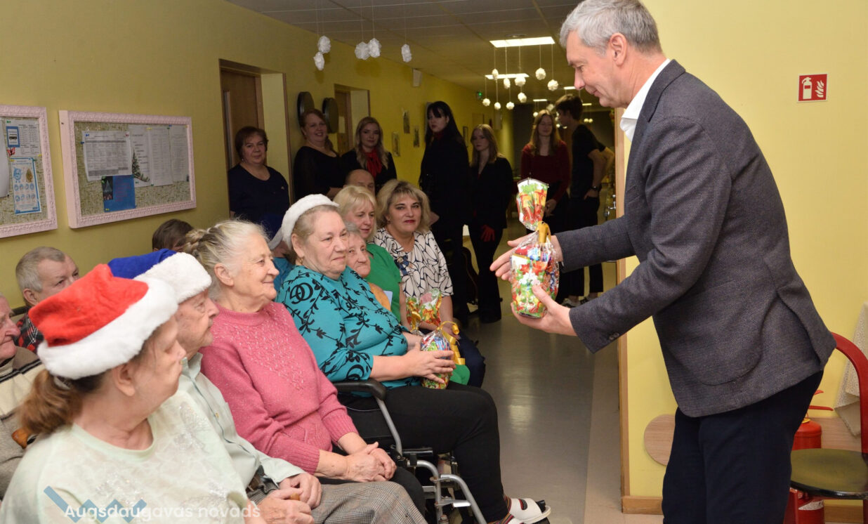 Ziemassvētku sagaidīšana ir cerību laiks, kad gan mazie, gan lielie tic un gaida brīnumus, kad sirdis un dvēseles ilgojas pēc siltuma, miera un kopā būšanas. Jau par tradīciju kļuvis, ka šajā laikā Augšdaugavas novada pašvaldības domes vadība un Sociālā dienesta vadība apmeklē visus sociālās aprūpes centrus, kuri atrodas novada teritorijā, un tajos notiek Ziemassvētku pasākumi. Klienti ilgi gaida šo notikumu un gatavojas, jo zina, ka tie būs ar prieku piepildīti brīži. 19.decembrī Augšdaugavas novada pašvaldības domes priekšsēdētājs Vitālijs Aizbalts un Augšdaugavas novada Sociālā dienesta vadītāja Anna Jegorova viesojās Valsts sociālās aprūpes centra „Latgale” filiālēs „Kalkūni” un “Kalupe”, Višķu sociālās aprūpes centrā un dienas centrā un sociālo pakalpojumu centrā “Pīlādzis”, lai sirsnīgi sveiktu iemītniekus un darbiniekus ar Ziemassvētkiem un Jauno gadu. Valsts sociālās aprūpes centra „Latgale” filiālē „Kalkūni” dzīvo 168 klienti, no tiem 10 Ukrainas civiliedzīvotāji, savukārt filiāli “Kalupe” par savu māju sauc 187 klienti. Višķu sociālās aprūpes centrā dzīvo 74 klienti, bet sociālo pakalpojumu centrā “Pīlādzis” – 70. Katrs no viņiem saņēma saldu dāvanu no pašvaldības.