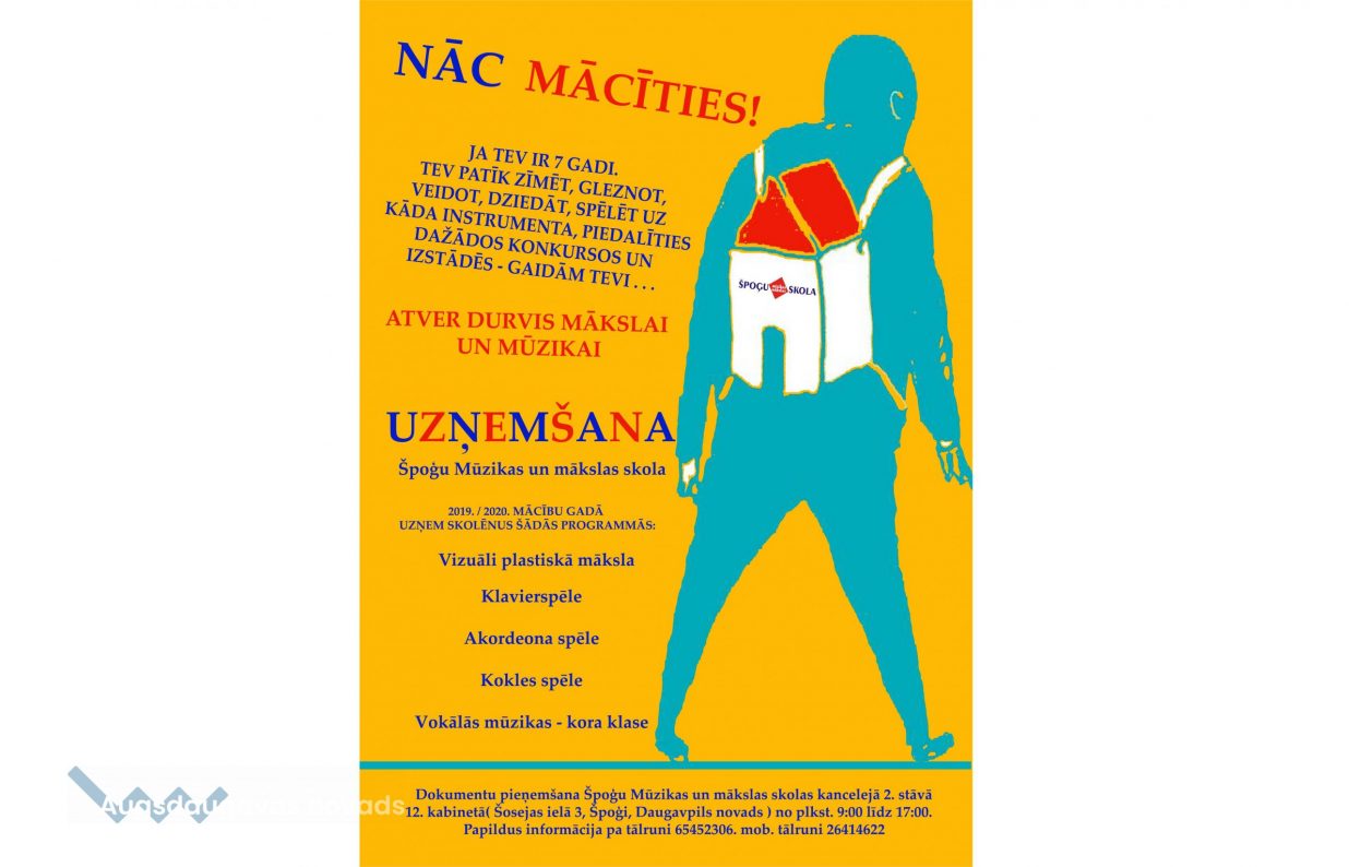 Špoģu Mūzikas un mākslas skola turpina audzēkņu uzņemšanu 2019./2020.mācību gadam