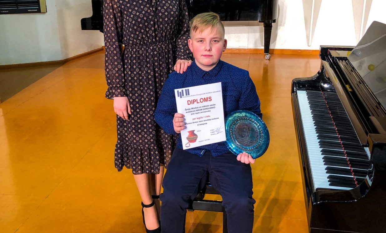 Kategorijā A2 piedalījās Špoģu Mūzikas un mākslas skolas 6. klases audzēknis Niks Gordijenko (ped. Agate Jermaļonoka), izpildot obligāto latgaliešu tautasdziesmu “Malni muni kumieleņi” un latgaliešu tautasdziesmu Sandras Mežores apdarē “Ozeiti munu.”