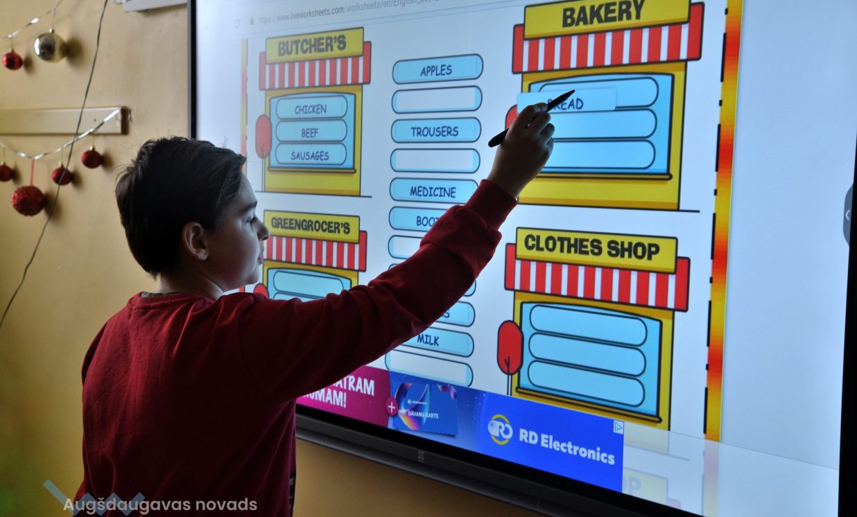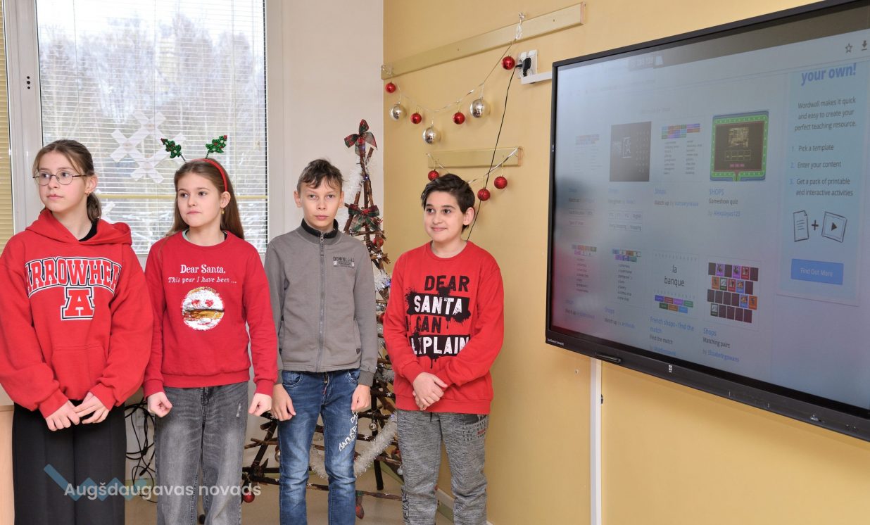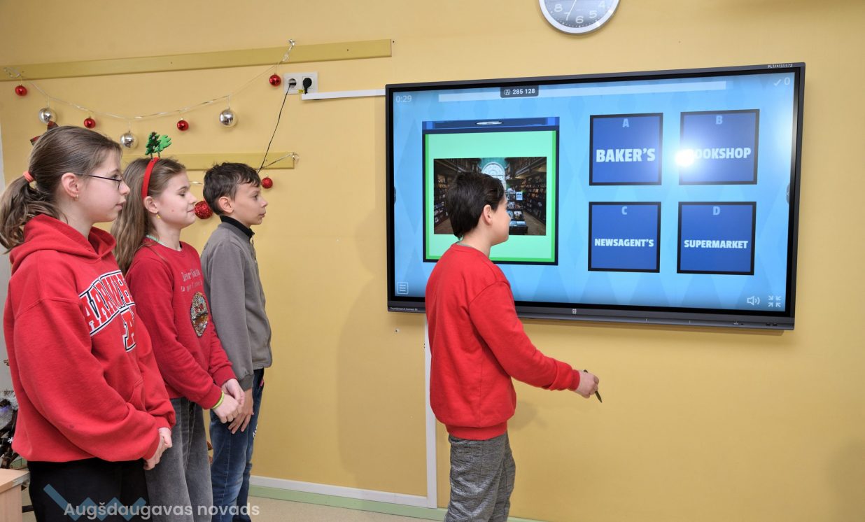 Arī pamatskolas klašu skolēni vielu apgūst ar digitālajām tehnoloģijām. Piemēram angļu valodā tiek piedāvāti dažādi interaktīvie uzdevumi, kas ir pieejami interneta vietnēs. Tos var pildīt gan uz interaktīvās tāfeles, gan mājās. Šāda pieeja tika aprobēta laikā, kad mācības notika attālināti, un, kā skaidro angļu valodas skolotāja Ludmila Kārkliņa, bērniem digitālie uzdevumi ļoti patika. Kompetenču izglītības pieejā skolotājam pašam ir jāatrod veids kā viņš pasniegs vielu, kas nozīmē, ka darba procesā pedagogiem jābūt pietiekoši radošiem. Latvijā nepastāv nepieciešamās vides, lai caur sabiedrību pilnībā iekļauties angļu vai vācu valodas apguvē, tādēļ digitālie mācību līdzekļi ir neaizvietojams palīgs ne tikai materiālu meklēšanā, bet arī klausīšanās, runāšanas un citu uzdevumu veikšanā.