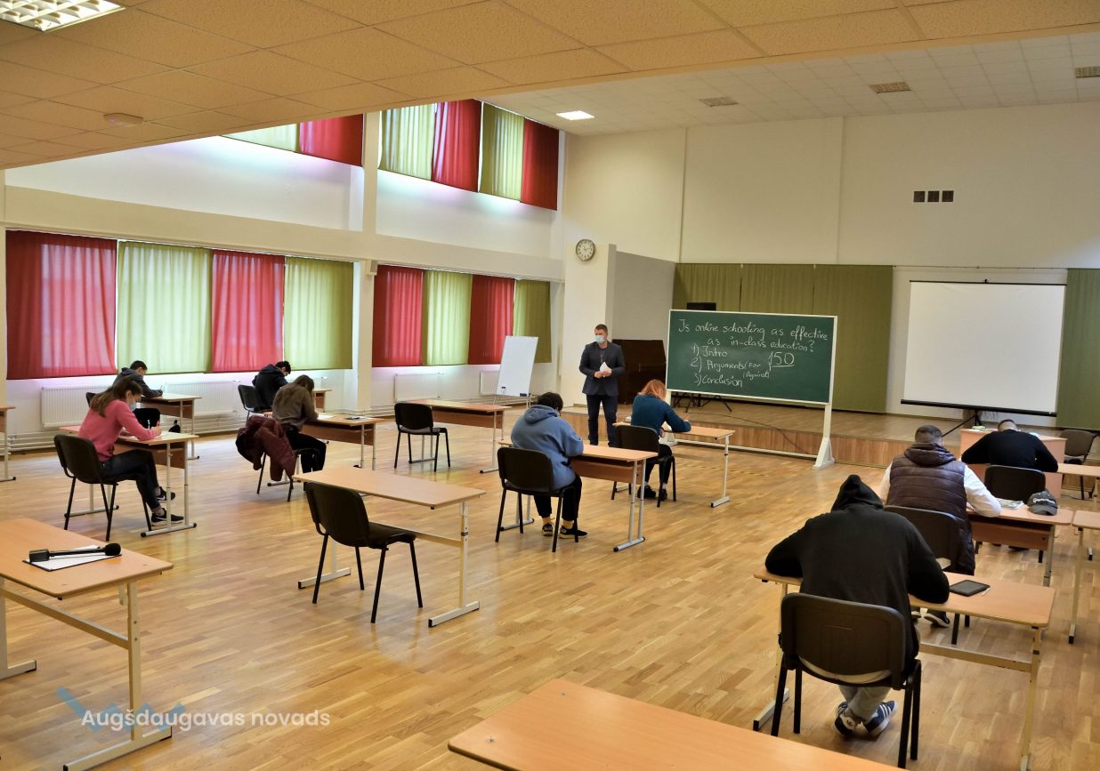 Špoģu vidusskolas pieredze gatavošanās procesāŠpoģu vidusskolas angļu valodas skolotājs atzīst, ka attālinātais mācību process gatavošanos eksāmeniem būtiski nav ietekmējis: ”Cilvēki netika trenēti kaut kam tādam. Visiem tas bija kaut kas jauns. Eksāmens iepriekš bija paredzēts marta sākumā, un līdz tam laikam jau viss tika izdarīts. Šobrīd vairāk tiek strādāts uz klausīšanos, lasīšanu, teksta analīzi, interpretāciju.”Pēc Sandra Skaraiņa teiktā, ārkārtējās situācijas laiks skolēniem ļāva pat vēl labāk sagatavoties eksāmenam, un kopumā nāca par labu: ”Es ceru, ka ieguvumi ilgtermiņā būs lielāki, jo skolēniem bija iespēja koncentrēties pašiem uz sevi, jākļūst atbildīgākiem. Visu cieņu vecākiem, kuri varēja apvienot savu darbu un bērnu kontroli, jo bija jāpārbauda vai viss tiek darīts. Tāpat tā bija iespēja vecākiem vairāk iedziļināties mācību procesā, un skolniekiem vairs nebija iespēju pateikt, ka nekas nav uzdots mājasdarbos.”