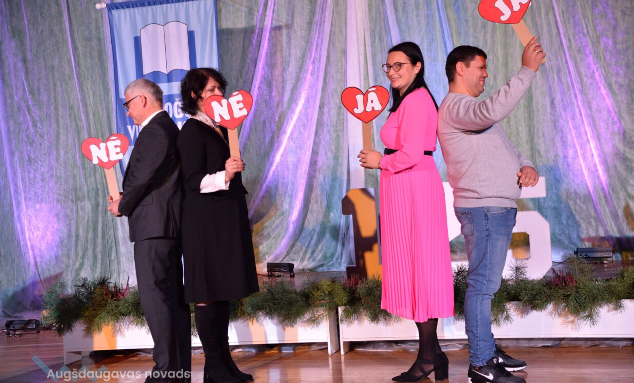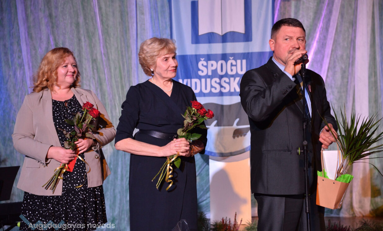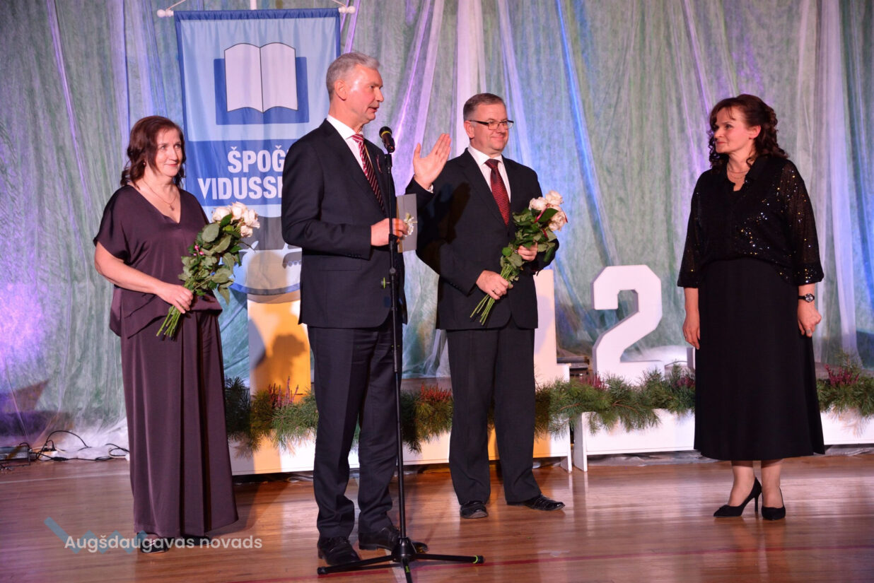 Skolas kolektīvu ar ievērojamo jubileju apsveica Augšdaugavas novada pašvaldības domes priekšsēdētājs Vitālijs Aizbalts, viņa pirmais vietnieks Jānis Proms un novada Izglītības pārvaldes vadītāja Janita Zarakovska. “Zīmīgi, ka cilvēki, kuri šo skolu ir pabeiguši, strādā gan novada pašvaldībā, gan savā Višķu pagastā, gan Latvijas ministrijās, ir prieks viņus satikt. Tas nozīmē, ka skola, skolotāji bija devuši viņiem ļoti daudz – zināšanas, gudrību, dzīves pieredzi. Šodienas pasākuma pilnā zāle pierāda to, ka visi mīl, ciena savus skolotājus, skolu. Mēs kā pašvaldības vadība darīsim visu, lai Špoģos vidusskola bija, ir un lai būtu,” teica Vitālijs Aizbalts. Tuvākajā nākotnē skolu gaida patīkamas pārmaiņas – remontu piedzīvos laukums ēkas priekšā, sporta laukums un daži kabineti.