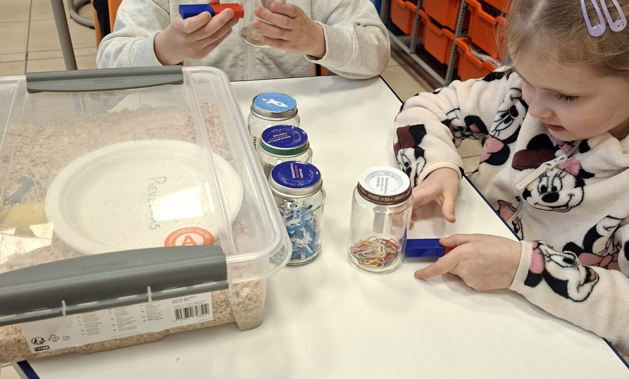 Vislielāko interesi izraisīja dārgumu meklēšana. Koka skaidu kastē bija paslēpti dažādi priekšmeti, ar magnēta palīdzību bērniem vajadzēja tos sameklēt un sašķirot divos trauciņos – priekšmeti, kas pievelkas, un tie, kas nepievelkas.