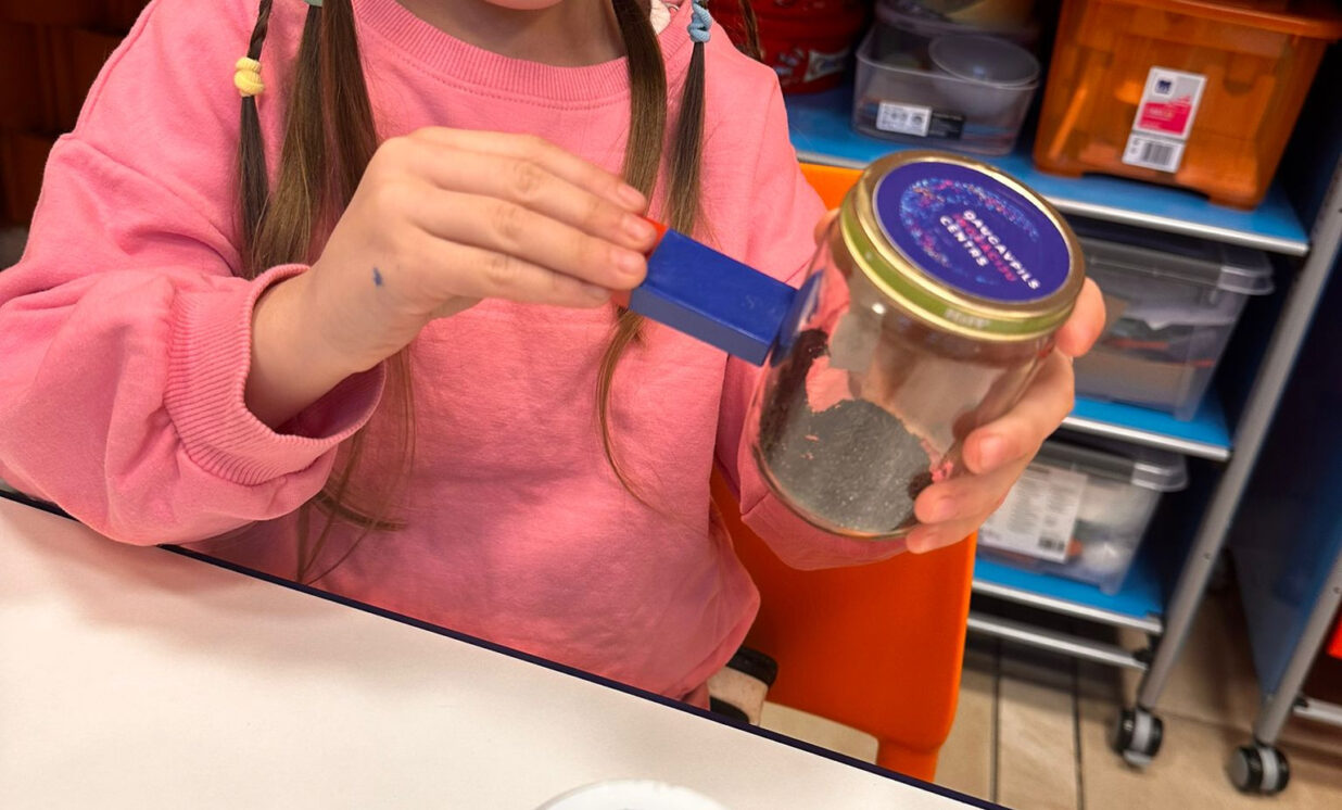 Nodarbības sākumā bērnus iepazīstināja ar magnētu – tā īpašībām un darbības principiem. Bērni uzzināja, kāpēc magnēti pievelkas un atgrūžas, kā arī kādus materiālus magnēts pievelk un kādus – nē. Lai zināšanas pārbaudītu praksē, bērniem tika piedāvāta aktivitāte ar burciņām, kas piepildītas ar dažādiem materiāliem – smiltīm, papīru, saspraudēm, pūkainām stieplītēm un metāla skaidiņām. Ar magnētu palīdzību viņi varēja pārliecināties, kuri priekšmeti reaģē uz magnētisko lauku.