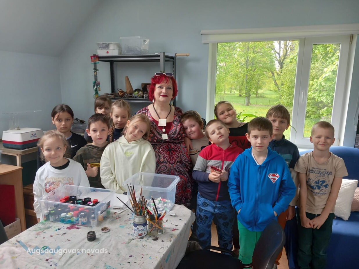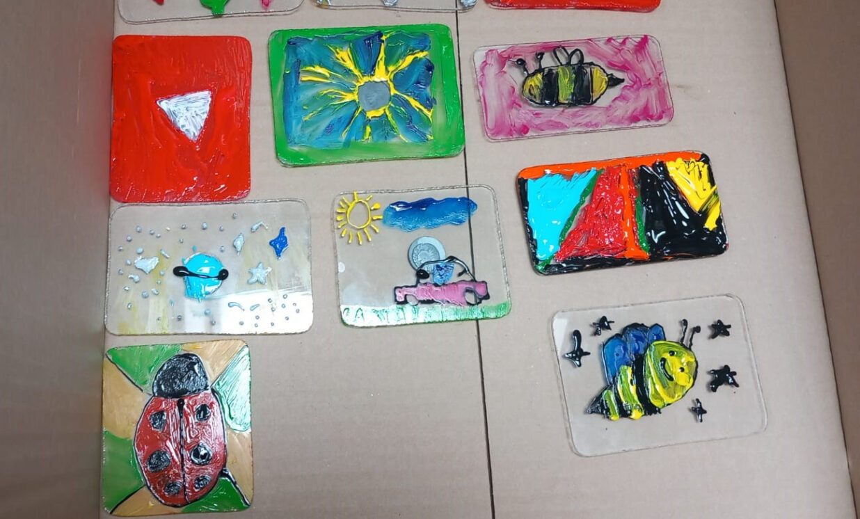 Īpaši aizraujoša bija radošā nodarbība “Pieskarties stiklam”, kurā bērni iepazinās ar stikla dizaina aktualitātēm un kopā ar mākslinieci Kristīni Lipkovu veidoja savus unikālos mākslas darbus – stikla magnētiņus.