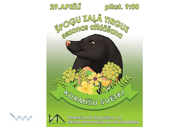 29.aprīlī plkst. 9:00 Špoģu Zaļajā tirgū norisināsies “Kurmīšu svētki” jeb tirdzniecības sezonas atklāšana, kurai aicināti pieteikties stādu audzētāji, amatnieki, zemnieki un citi tirgotāji.