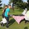 Jau no agras pēcpusdienas jauniešu komandas mērojās spēkiem 10 sportiskās disciplīnās, komandas saliedēšanas spēlēs, kurās varēja pierādīt ne vien savu fizisko sagatavotību, bet arī komandas garu, prieku par kopābūšanu un radošo fantāziju. Jau disciplīnu nosaukumi vien viesa interesi dalībniekos- “Karalauka mediķi” ar pirmās palīdzības sniegšanas prasmēm, “Dārgumu meklēšana”, “Ēģiptes piramīdas”, veidojot dzīvo piramīdu, “Pazudušais siena rullis”, “Ātrāk, tālāk, slapjāk”, “Pazudusī krāsa”. Arī mazākajiem pasākuma dalībniekiem bija jāmērojas spēkiem 5 sporta disciplīnās, pielietojot veiklību, attapību un sadarbības prasmes. Kopumā ap 100 bērnu, jauniešu un pieaugušo ar prieku piedalījās šajās fiziskajās aktivitātēs.