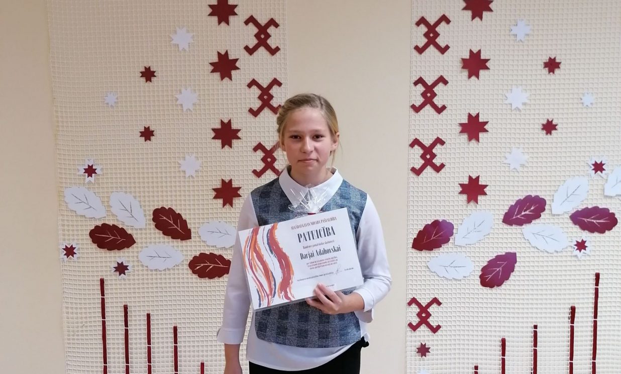 - Randenes pamatskolas 8. klases skolniecei Darjai Adahovskai.