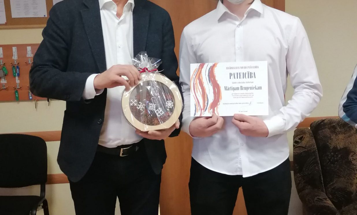 - Vaboles vidusskolas 9. klases skolniekam Aivim Jankovskim un 12. klases skolniekam Mārtiņam Bruņeniekam;