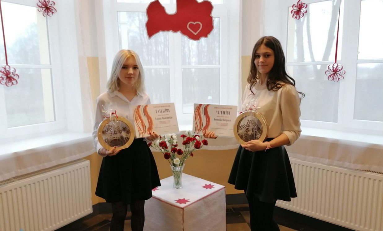 - Ilūkstes Raiņa vidusskolas 9. klases skolniecei Elīnai Gerasimovai un 12. klases skolniecei Egijai Tretjukai;