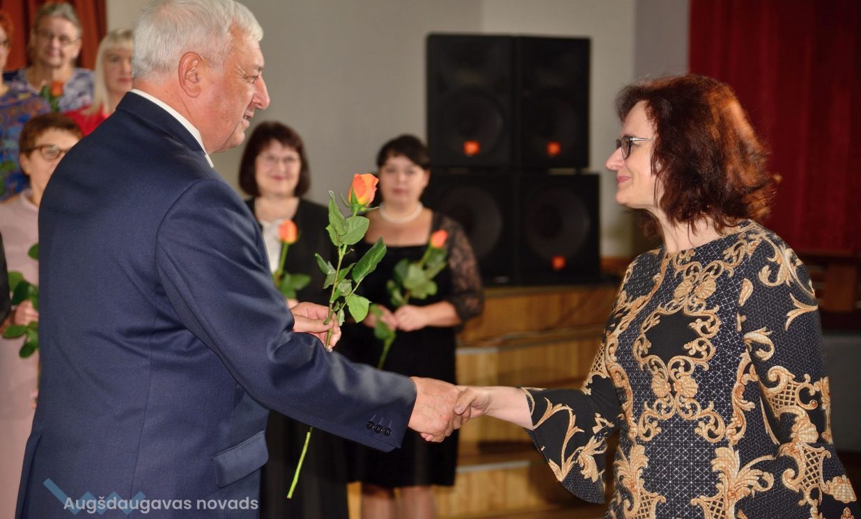 Apsveikuma vārdus skolotājiem veltīja Augšdaugavas novada pašvaldības izpilddirektora pienākumu izpildītāja Ināra Natarova, vēlot spēku, jo skolēnu vajag ne tikai izmācīt, bet par viņu arī pacīnīties, pierādīt skolas pastāvēšanas nepieciešamību. “Lai jums pietiek spēka un pēc tam novērtē bērni, vecāki un arī pašvaldība.”