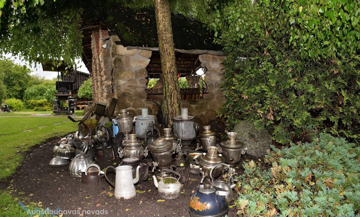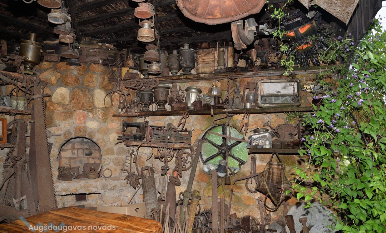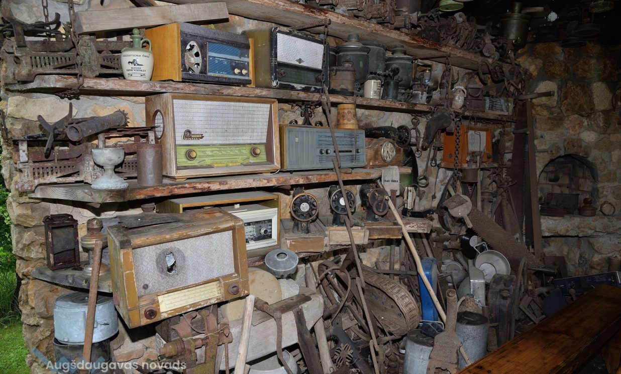 Ikviena lieta ir veidota ar īpašu rūpību un izdomu. Skatu piesaista dažādas senlietas, kas apmetušās malu malās. Biruta stāsta, ka vīrs vēl jaunībā visā apkārtnē vācis nodošanai metāllūžņus, bet viņa no lūžņu kaudzes pa laikam izvilkusi kādu noderīgu mantu. Kādā brīdī attapuši, ka starp lūžņiem ir daudz tādu lietu, kas jau ieiet vēsturē - petrolejas lampas, prīmusi, ogļu gludekļi un daudzas citas vērtīgas lietas. Pie saimniekiem nonākuši sen pazīstamu zīmolu Husqvarna, Alexanderwerk, American system izstrādājumi, krievu un zviedru prīmusi, Čikāgā izgatavots zirgu grābekļu asināmais, kolekcijā ir 298 ogļu gludekļi. “Sākumā likām šīs mantas kaudzē, bet reiz pie mums pieteicās iegriezties skolotāju grupa un nācās šo kaudzi sakārtot, uztaisīt plauktus un salikt ekspozīciju.” Tā izveidojās dažādu senlietu kolekcija, kuru ik pa laikam papildināja vietējie iedzīvotāji, padzirdējuši par ģimenes aizraušanos. Viesiem ir iespēja aplūkot dažādas senlietas un dzirdēt interesantu saimnieces stāstījumu.