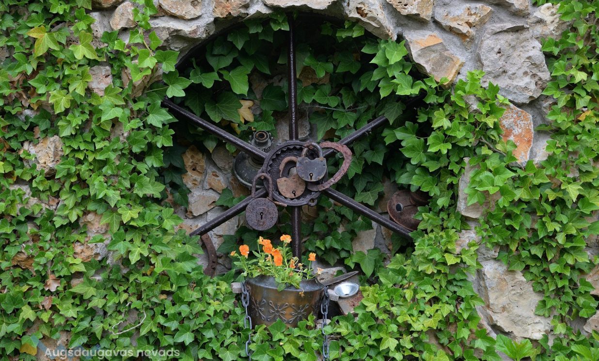 Te ir pārdomāts katrs teritorijas centimetrs un var sastapt retus un skaistus augus. Pie mājas sienas jau ienākas pirmās vīnogas, šeit to ir iestādītas vairākas šķirnes, kas nāk no selekcionāra Sukatnieka kolekcijas.