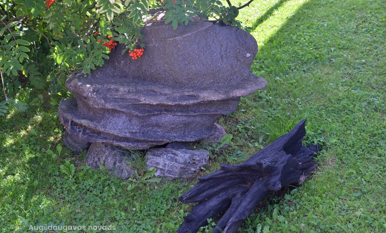 Lielā godā sētā ir dažādi akmeņi, ko Zigmunds savulaik atradis malu malās. Savākti vismaz pusotra simta dzirnakmeņu, kas izmantoti dārza interjerā. To vidū arī kāds milzu dzirnakmens, kas pilsētā atrasts 2012. gadā, veicot apakšzemes komunikāciju rekonstrukciju.