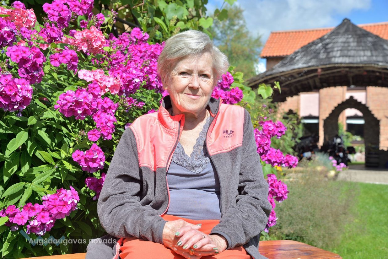 Viss ziedošais košums apkārt ir Birutas lolojums un roku darbs. Viņa atceras, kā veidojusi mājas priekšā pirmo zālāja pleķīti un dabūjusi pārmetumu no vīra, kam viņai zālājs, ja zāle ir riņķī apkārt. Taču pats savām rokām uzmeistarojis pirmo elektrisko zāles pļāvēju ar veļasmašīnas dzinēju un bērnu mašīnītes riteņiem. Vēlāk jau iegādājušies modernākas iekārtas.