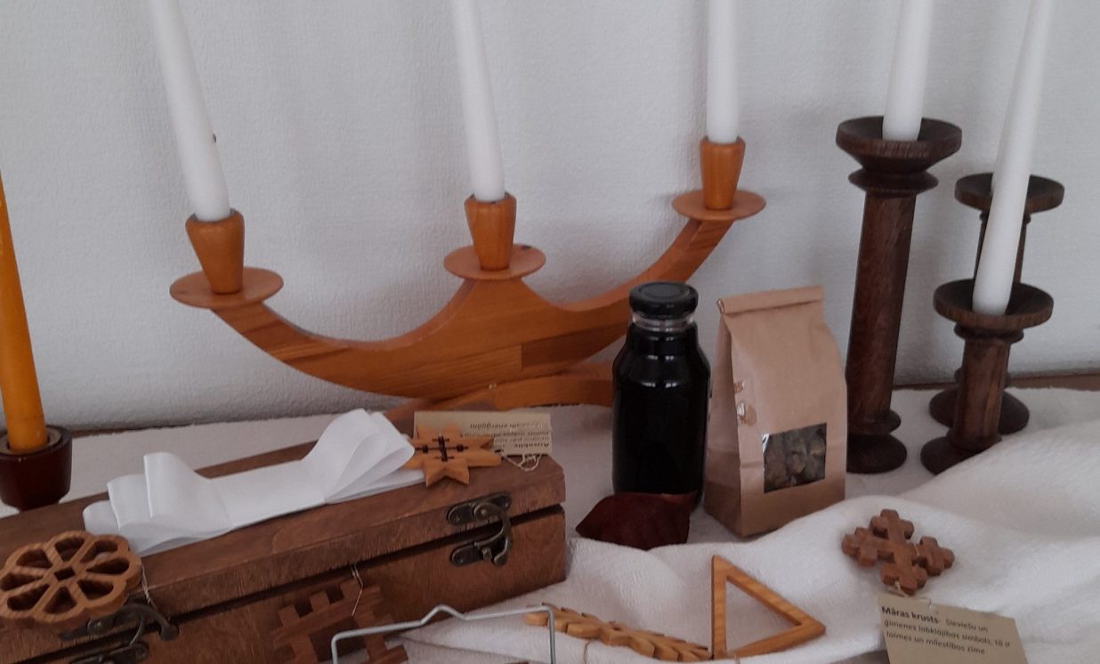 Ināra Ūbele parādīja svečturus, kuri ir kalpojuši kāzu reģistrācijās un bērnu kristību pasākumos. Lepojās ar to, ka kādreiz koka virpotos svečturus varēja pasūtīt Kalupē pie Arkādija Urbāna, bet tagad metāla svečturus var pasūtīt pie kalupieša Oskara Stūriškas.