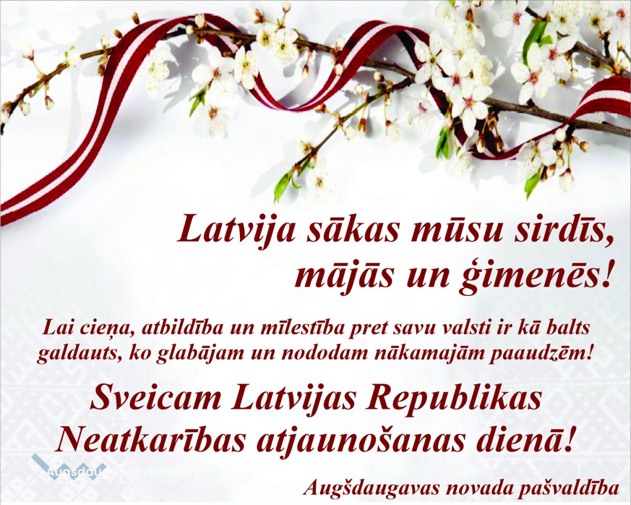 Sveicam Latvijas Republikas Neatkarības atjaunošanas dienā!