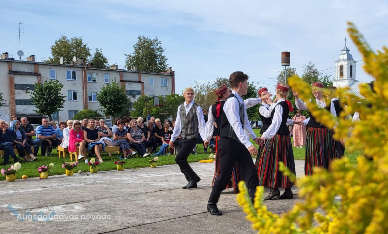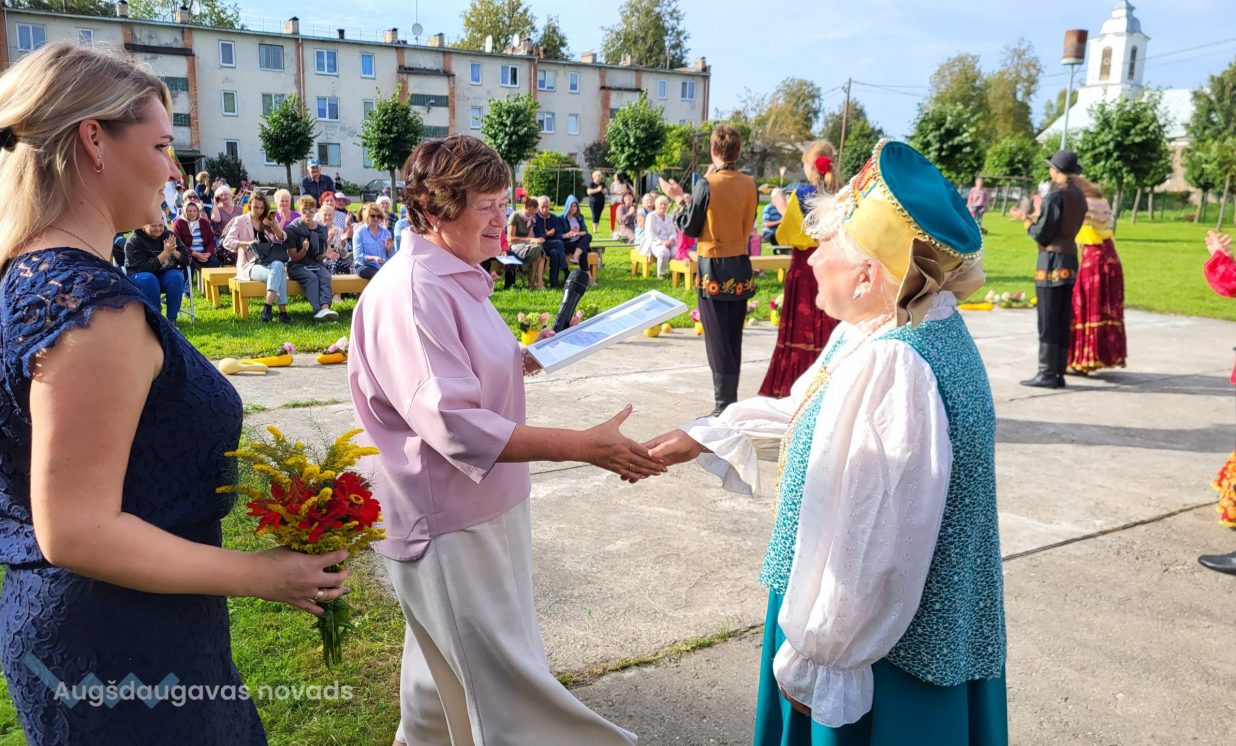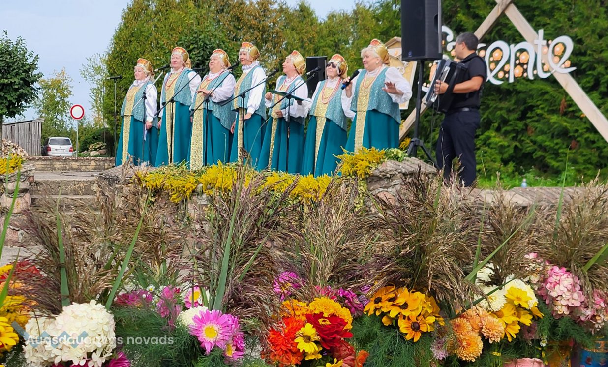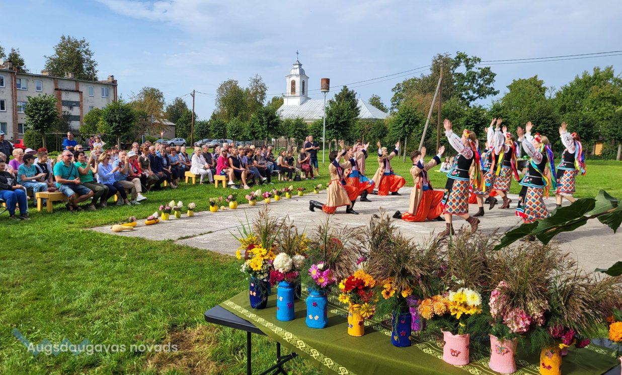 Svētku izskaņā visus klātesošos iepriecināja XXVII Vispārējo latviešu Dziesmu un XVII Deju svētku dalībnieki - Daugavpils valstspilsētas pašvaldības iestādes “Krievu kultūras centrs” folkloras ansamblis "Rusiči", vadītāja Tatjana Zubkova, un jauniešu tautas deju kolektīvs "Uzori", vadītāja Arina Popova. PALDIES radošajiem kolektīviem, kas skatītājus uzrunāja ar sirsnīgām dziesmām un jestrām dejām latviešu, krievu, ukraiņu un romu ritmos.