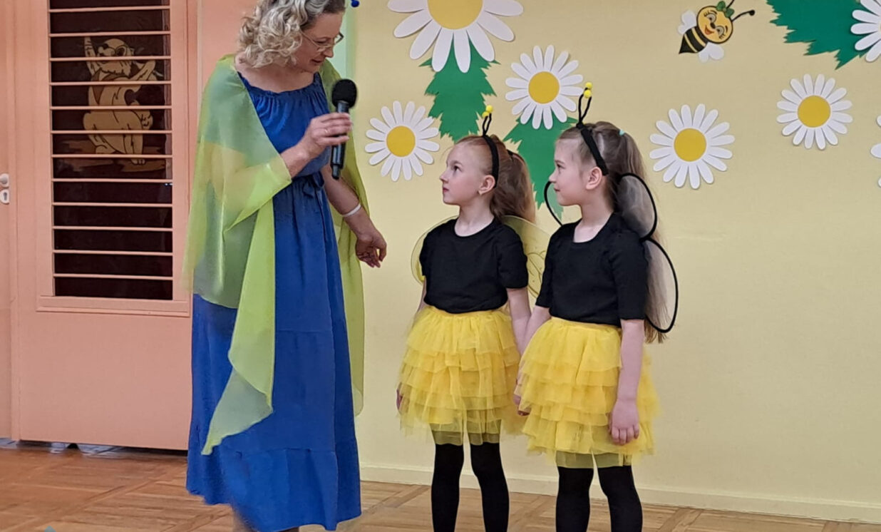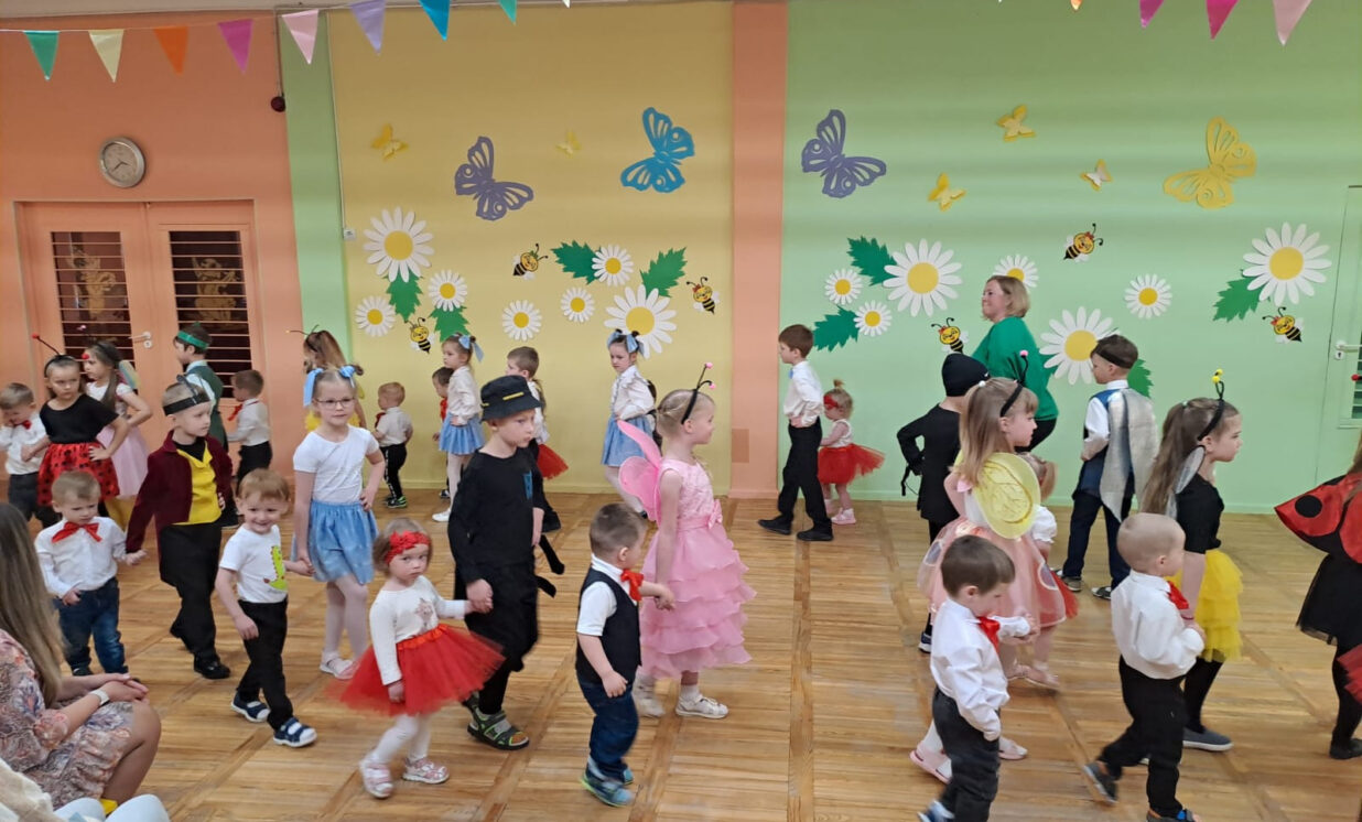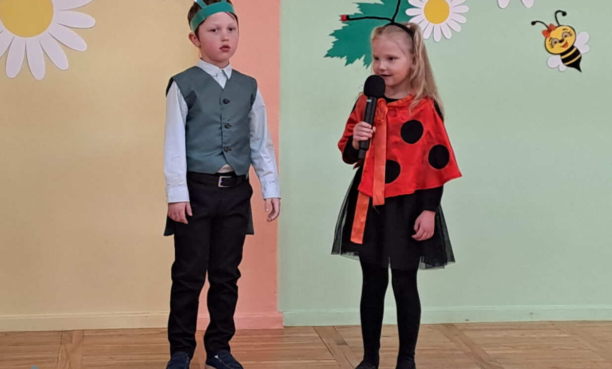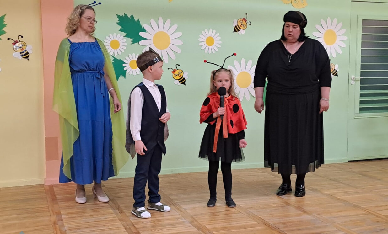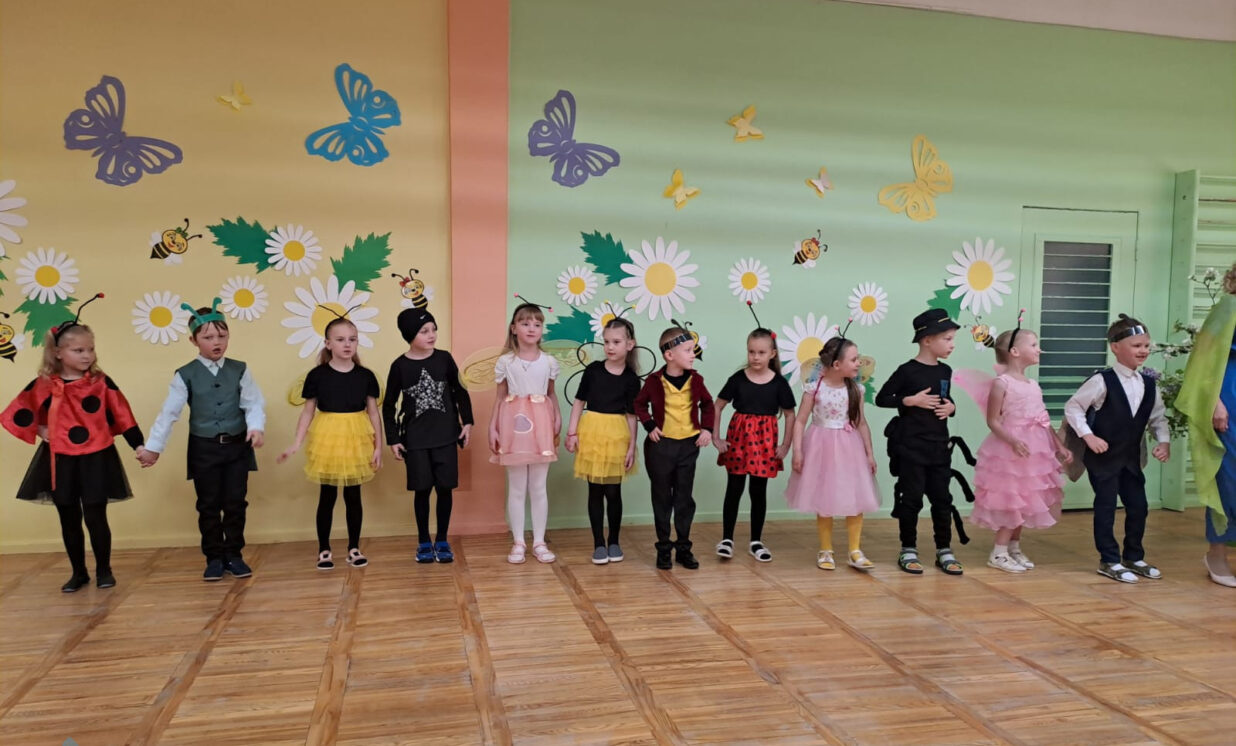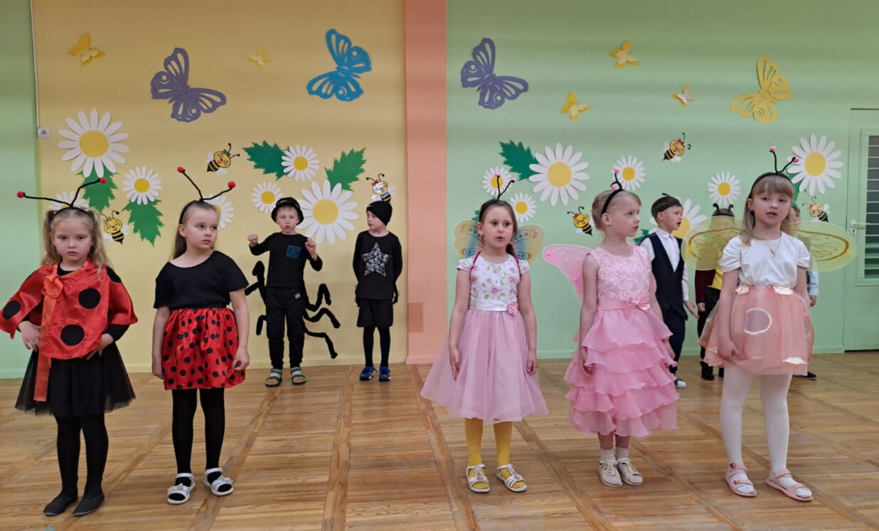 Ziedu pļavā notika pavasara atnākšanas ballīte! Mazie kukainīši („Zaķēnu” grupas bērni) un Spārīte (skolotāja Vita Kraukle) dejoja jautro kukaiņu deju. Ieklausoties mūzikas skaņās, ballīti apciemoja Zirneklītis (skolotāja Dace Krievāne). Zirneklītis atgādināja saviem draugiem par mīļākajiem un saulainākajiem pavasara svētkiem – Māmiņu dienu! Un tad katras grupiņas bērni sveica mammas ar dziesmām, dejām un dzejoļiem. Protams, vēlēja, lai māmiņām būtu vairāk brīvā laika, katru dienu apsolīja dāvāt bučas un apskāvienus, apsolīja palutināt māmiņas ar gardām sviestmaizēm un aromātisku kafiju, cienāt ar veselīgu medu un vēl daudz ko citu! Liels paldies visām grupu skolotājām, kuras bija īpaši pacentušās, pieskaņojot bērnu tērpus priekšnesuma tēmai.