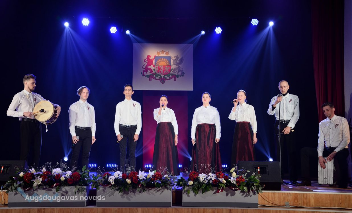 16. novembrī notika pasākums par godu Latvijas Republikas proklamēšanas 104. gadadienai. Uzrunājot klātesošos, Augšdaugavas novada pašvaldības domes priekšsēdētājs Arvīds Kucins uzsvēra, ka pirmo reizi šie svētki tiek svinēti pēc teritoriālās reformas jaunizveidotajā Augšdaugavas novadā. “Daugavas abos krastos tagad esam kopā, gan Latgales, gan Sēlijas daļa. Svētkos novadnieki ieklausās viens otra tradīcijās, dziesmās, valodas bagātīgajās niansēs un izteiksmēs, sacenšas prasmēs. Mēs strādājam kopā, lai attīstītu un stiprinātu mūsu novadu, jo Daugavas abas malas mūžam nesadalās. Mēs šodien turpinām darbu, ko sāka mūsu priekšgājēji pirms divām, trim vai četrām paaudzēm. Sava darba augļus nodosim mūsu bērniem un mazbērniem, kuri šo darbu turpinās. Mēs esam viens posms garā ķēdē. Ja spēsim turpināt sākto ceļu un nodot pēcnācējiem Latviju kaut nedaudz labāku nekā to atradām, tad savu uzdevumu būsim izpildījuši.” A. Kucins pateicās ikvienam, kas ar saviem darbiem un atbalstu stiprina novada attīstību, godprātīgi strādā, izglīto jauno paaudzi, piedalās kultūras un sporta norisēs. “Sveicu visus Augšdaugavas novada iedzīvotājus un novēlu ikvienam sirdī, domās un darbos iedegties par Latviju un tās nākotni.”