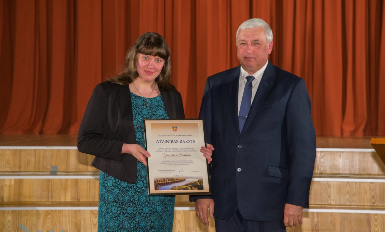 ◀ Latvijas biškopju biedrības Daugavpils biroja vadītāja, Zemnieku saimniecības “Līdumi” īpašniece Gunta Some par nozīmīgu ieguldījumu biškopības nozares attīstībā, Augšdaugavas novada popularizēšanu un aktīvu darbību sabiedrības labā.