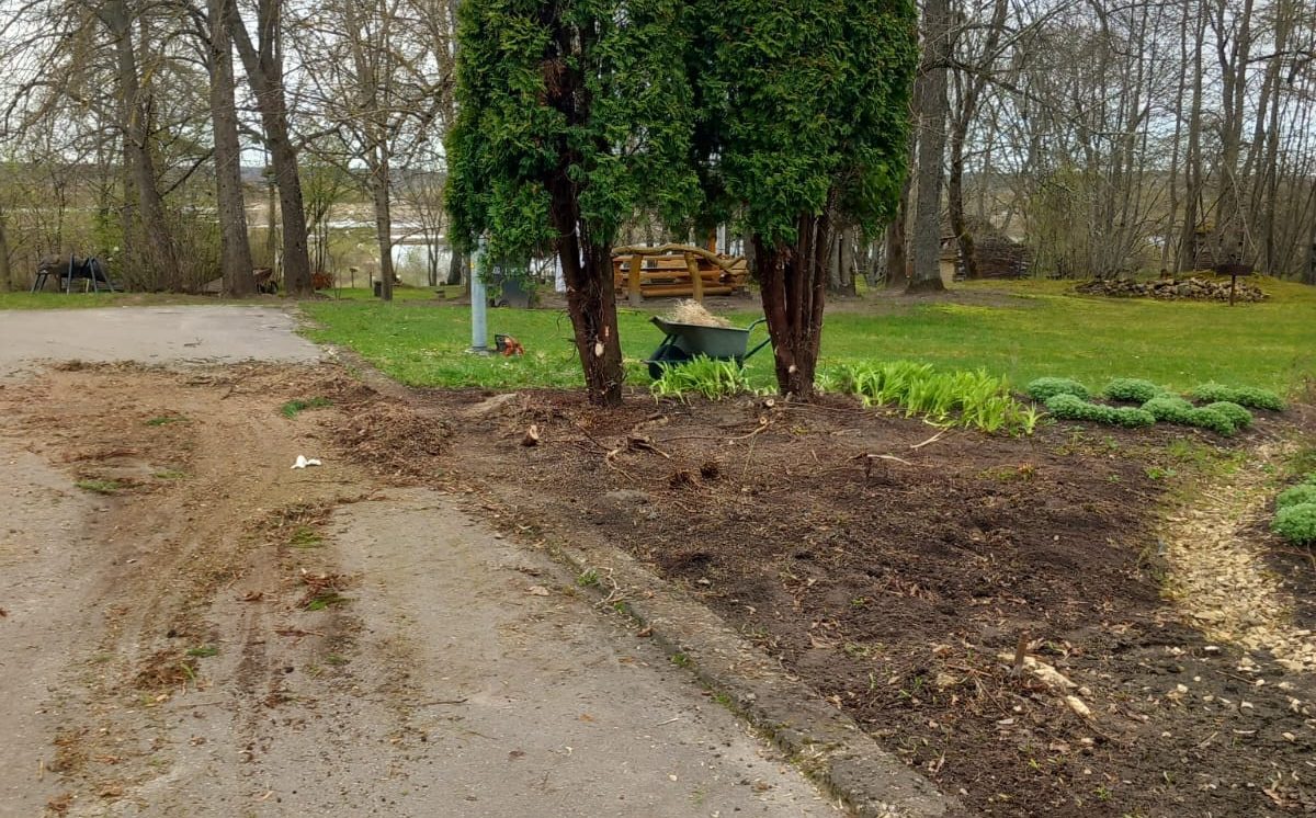 Kalkūnē darbinieki veica daudzgadīgo stādījumu apkopšanu un teritorijas labiekārtošanu.