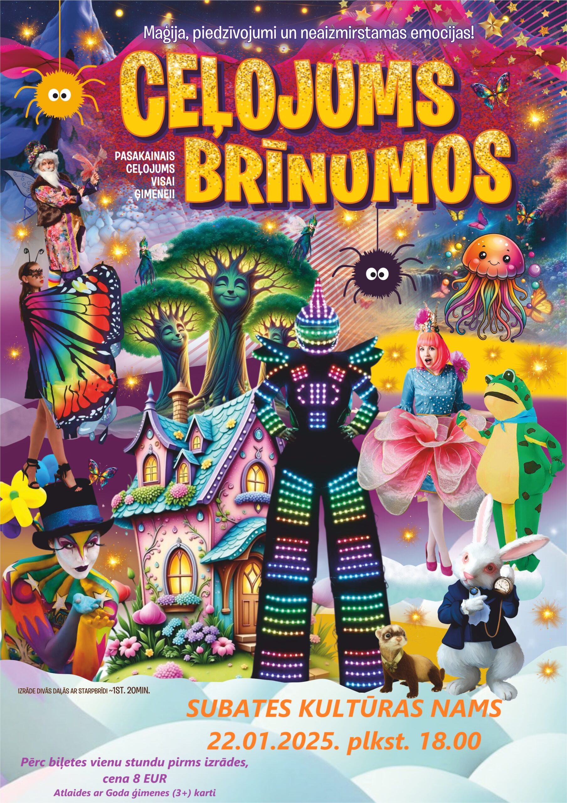 22. janvārī plkst. 18.00 Subates Kultūras namā un 23. janvārī plkst. 18.30 Naujenes Kultūras centrā būs skatāma teātra izrāde ar cirka elementiem “Ceļojums brīnumos”.