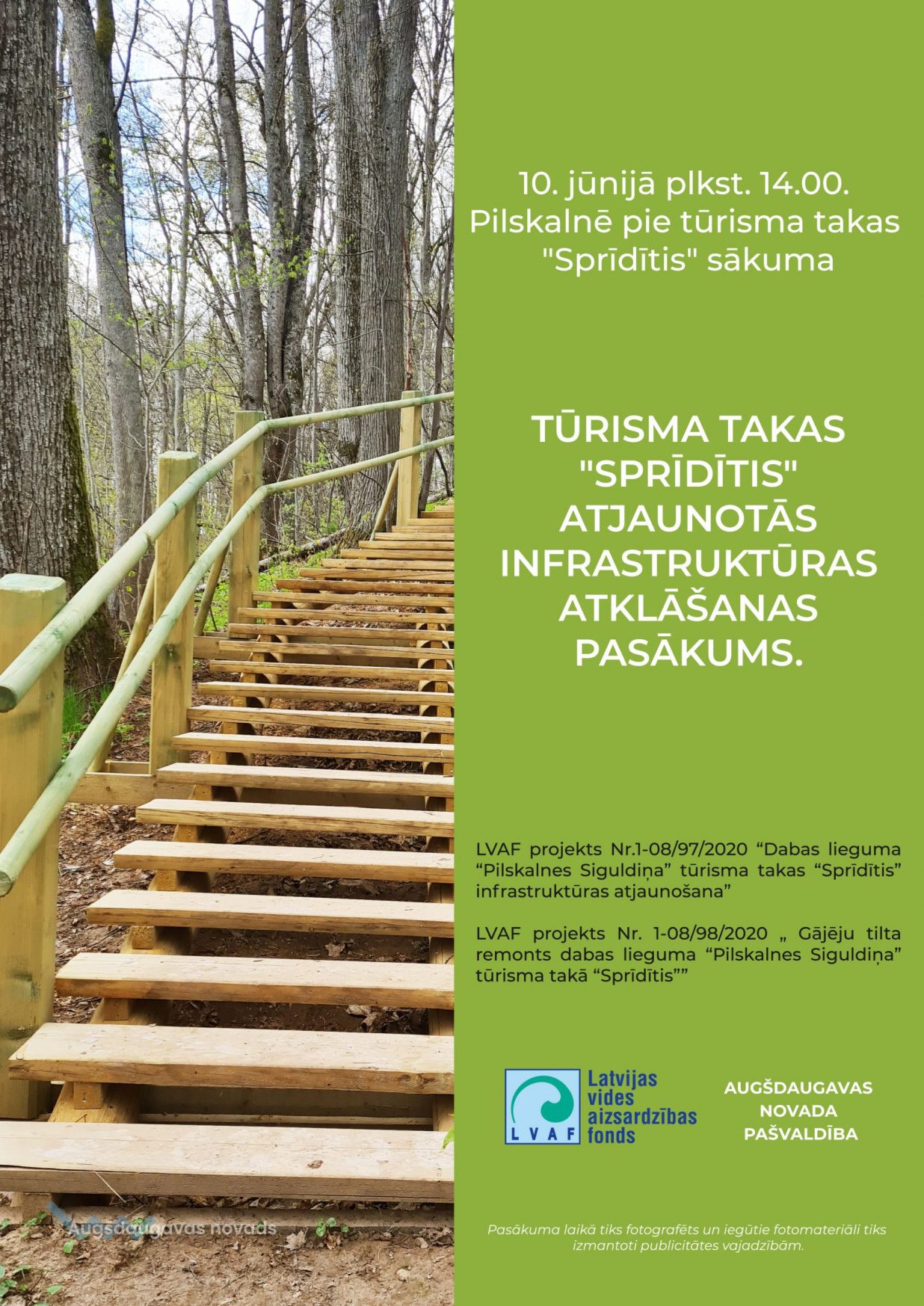 Ar Latvijas vides aizsardzības fonda un Augšdaugavas novada pašvaldības finansiālo atbalstu, Ilūkstes pilsētas administrācija īsteno divus projektus “Gājēju tiltu remonts dabas lieguma “Pilskalnes Siguldiņa” tūrisma takā “Sprīdītis”” (Nr.1-08/98/2020) un “Dabas lieguma “Pilskalnes Siguldiņa” tūrisma takas “Sprīdītis” infrastruktūras atjaunošana”(Nr.1-08/97/2020). Projekti tiek īstenoti ar vienotu mērķi - mazināt antropogēno slodzi uz biotopiem un aizsargājamām sugām īpaši aizsargājamā dabas teritorijā dabas liegumā "Pilskalnes Siguldiņa".