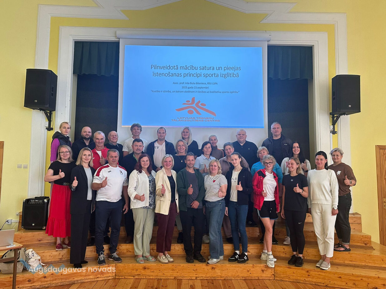 Augšdaugavas novada pašvaldībā viens no pirmajiem projekta ietvaros profesionālās pilnveides semināriem “MŪSDIENU SPORTA PEDAGOĢIJAS AKTUALITĀTES: TEORIJA UN PRAKSE”, notika 2025.gada 23.septembrī Ilūkstes Raiņa vidusskolā. Kuplā skaitā savu profesionālo pilnveidi paaugstināja 30 pedagogi. Seminārā arī piedalījās Augšdaugavas novada pašvaldības domes priekšsēdētāja vietniece Olesja Ņikitina.