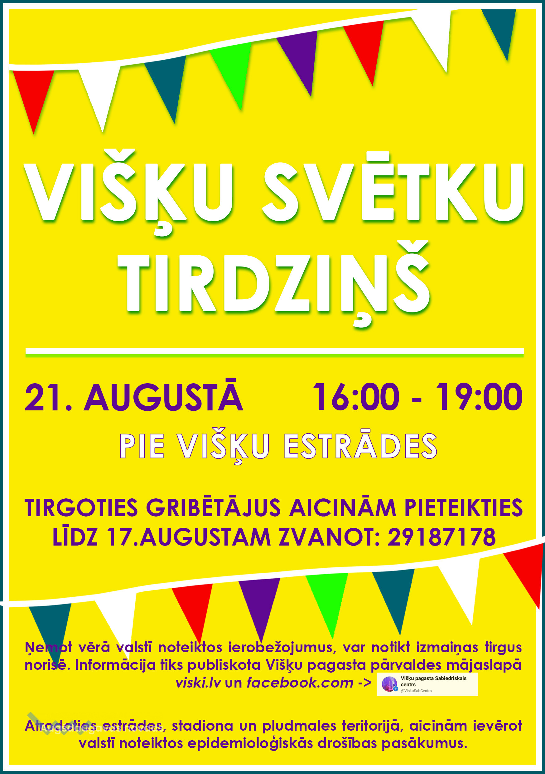 Višķu svētku tirdziņš: 21. augustā, 16.00 - 19.00, pie Višķu estrādes. Lielos tirgotājus aicinām pieteikties līdz 17. augustam zvanot: 291 87 178.