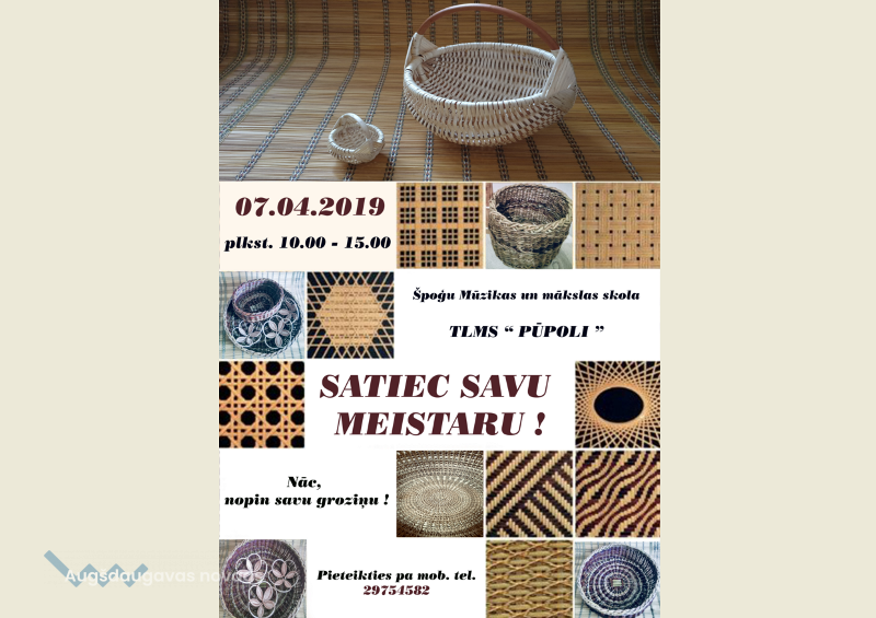 Lai apgūtu vienkārša groziņa pīšanas prasmes un radītu interesi par kārklu klūdziņu un sloksnīšu pinumiem, Nemateriālā kultūras mantojuma saglabāšanas pasākuma "Satiec savu meistaru" ietvaros TLMS "Pūpoli" aicina interesentus nopīt savu groziņu un tikties svētdien, 7. aprīlī, Špoģu Mūzikas un mākslas skolā no plkst. 10.00 līdz 15.00.
