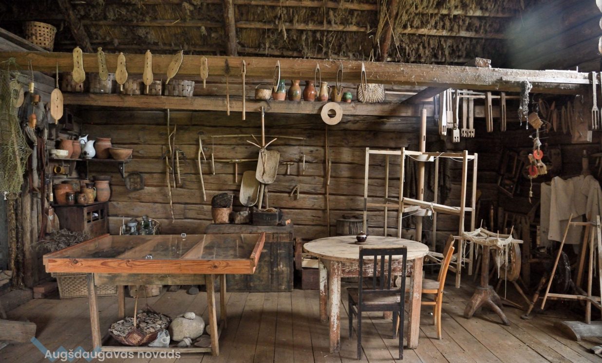 Rijā redzamie senie sadzīves priekšmeti paglābti no iznīcības sagruvušās, cilvēku pamestās mājās Dvietes palienes teritorijā. Gadsimtu liecinieki ir savākti, nomazgāti, novietoti zem senās rijas niedru jumta.