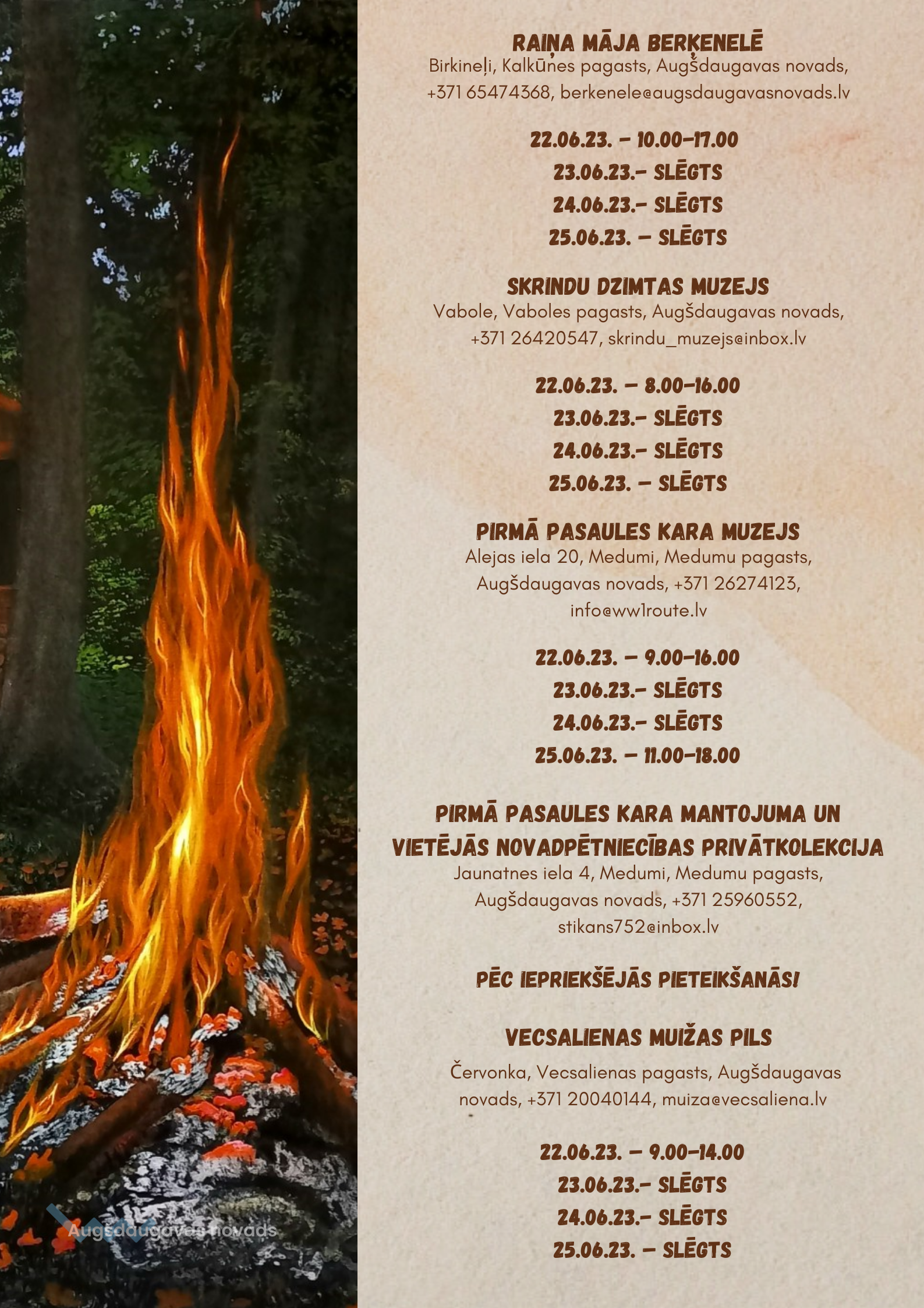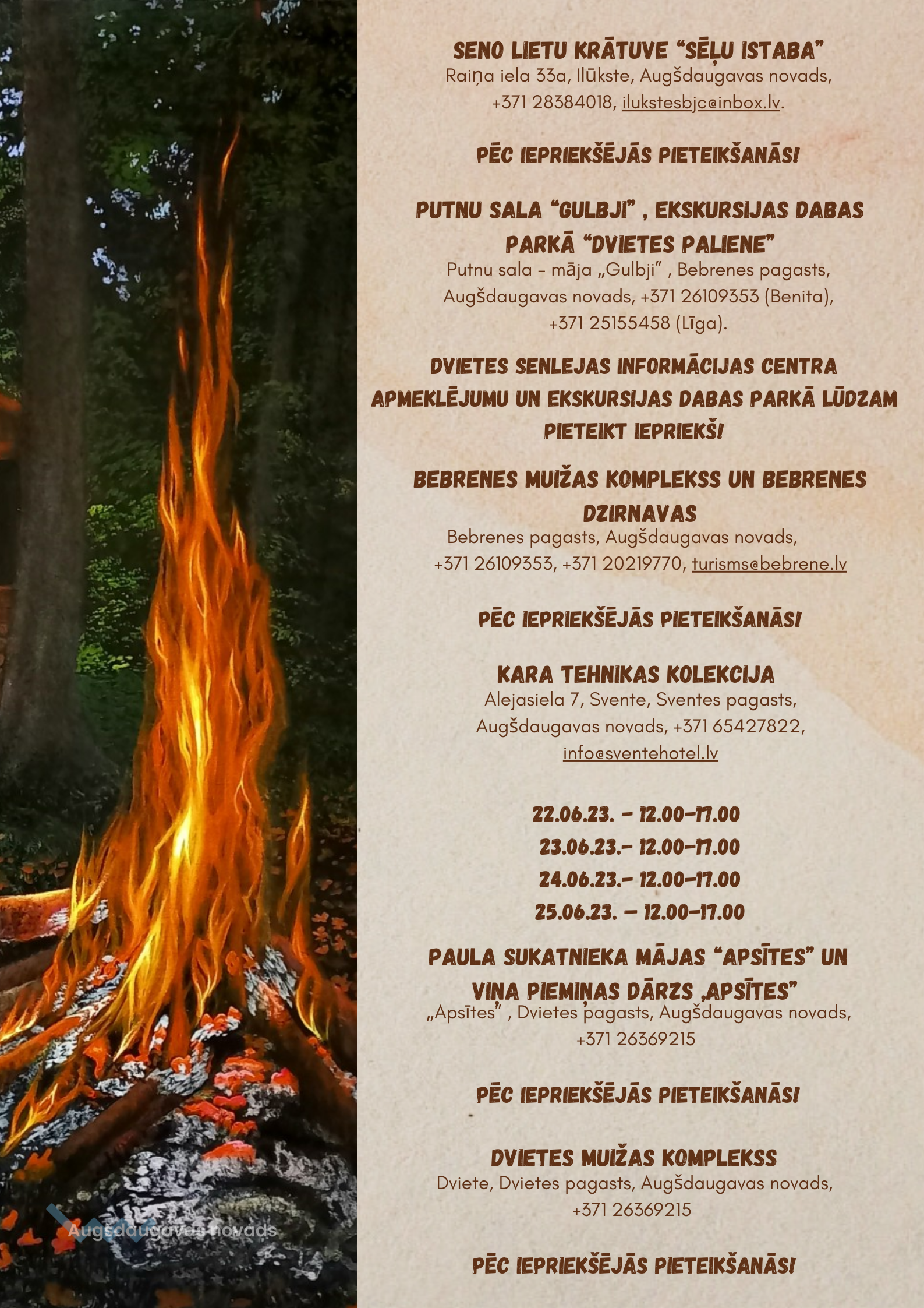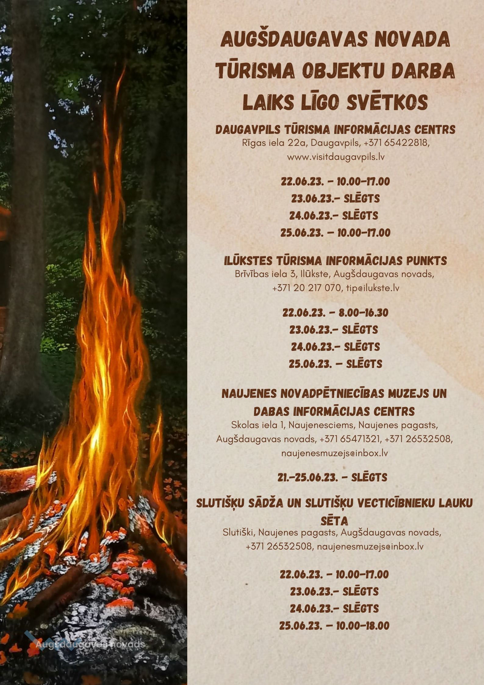 Tūrisma objektu darba laiks Līgos svētkos