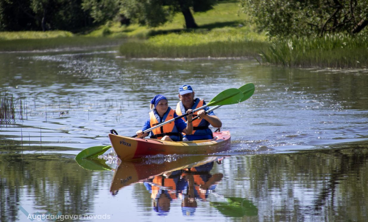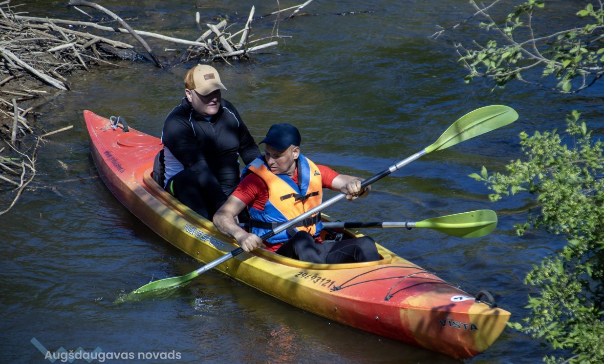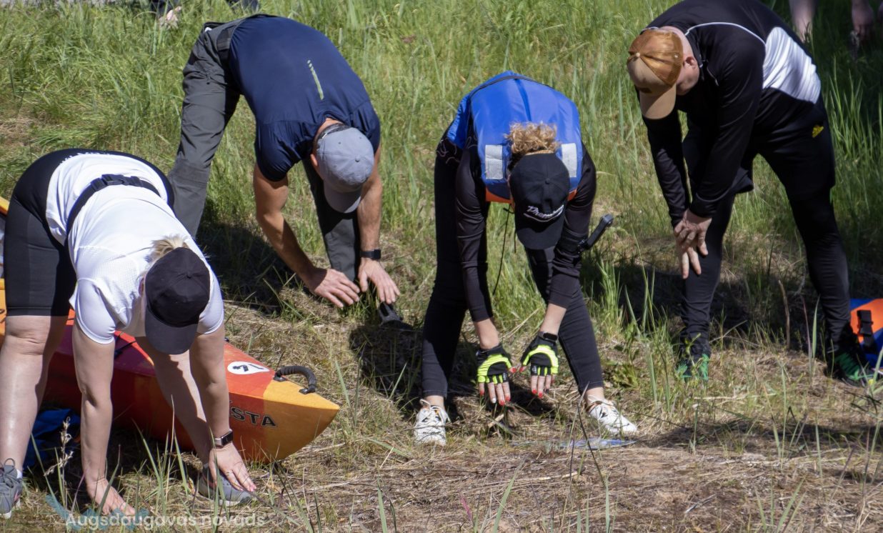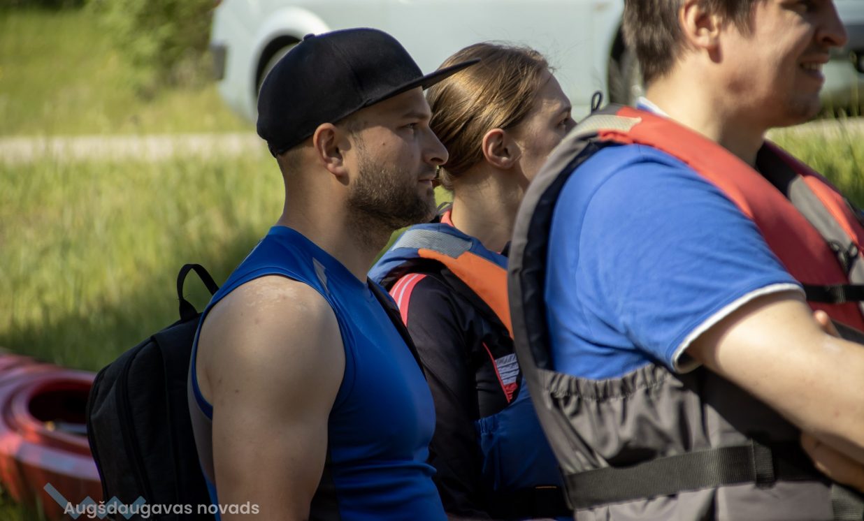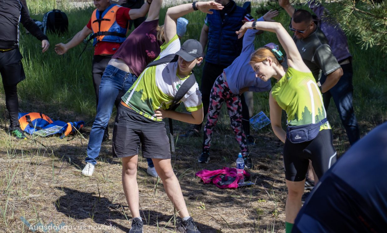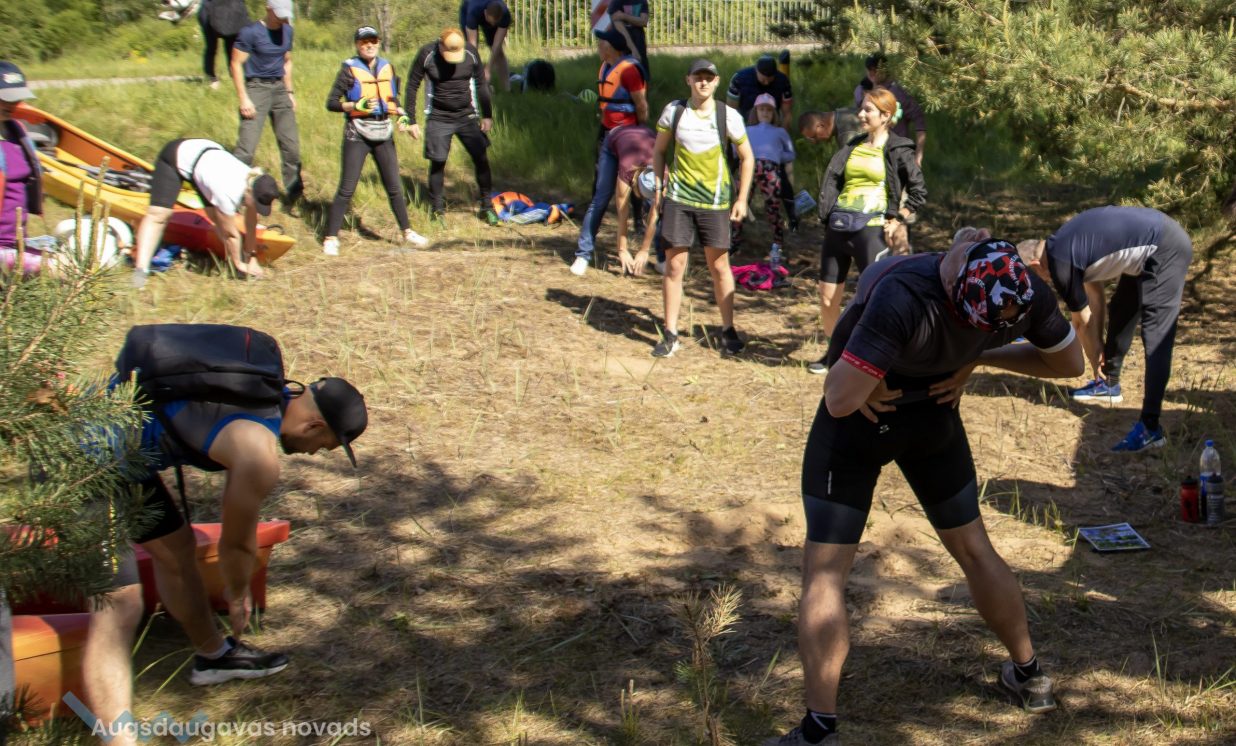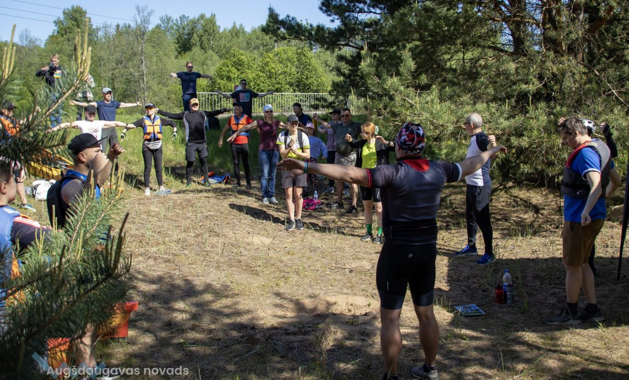 Pirms kāpšanas kajakos visi dalībnieki iesildījās, izvingrināja rokas, kājas, noklausījās drošības instruktāžas un devās ceļā.